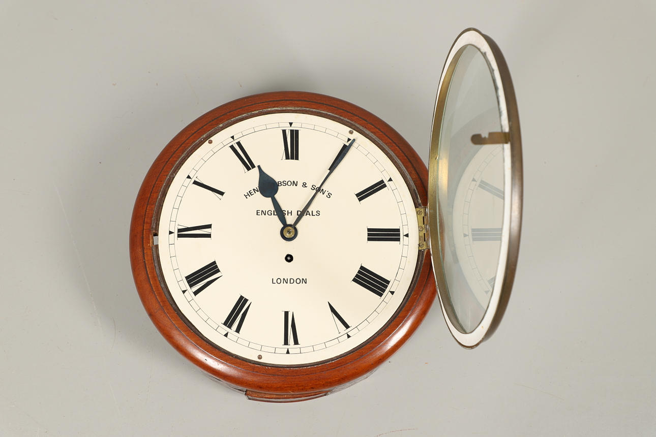 12" målad urtavla signerad Henry Hobson & Sons, English Dials London, 37cm diameter.