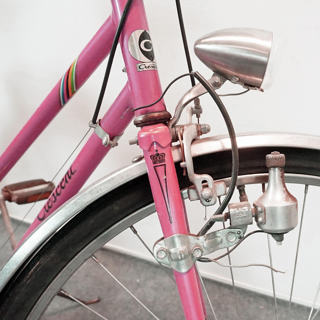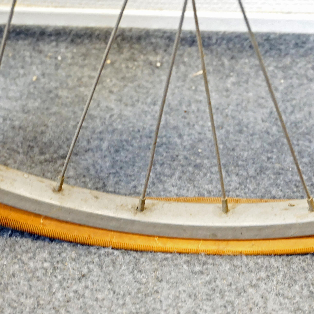 Slitage. Punkterade däck, växelspak och baklykta ditsatt med stripe och silvertejp, Rost, repor, märken.
