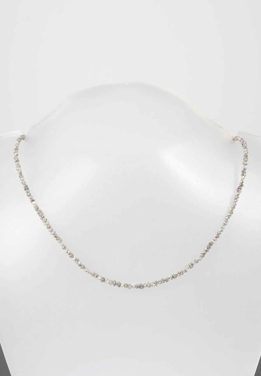 Halsband med omfasetterade diamantrundor från ca. 1,5 mm - 2,5 mm, med silver stängning. Mått ca. Längd 44 cm Vikt inklusive lås ca. 24,5 ct.