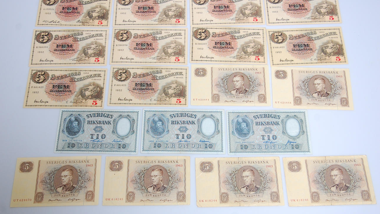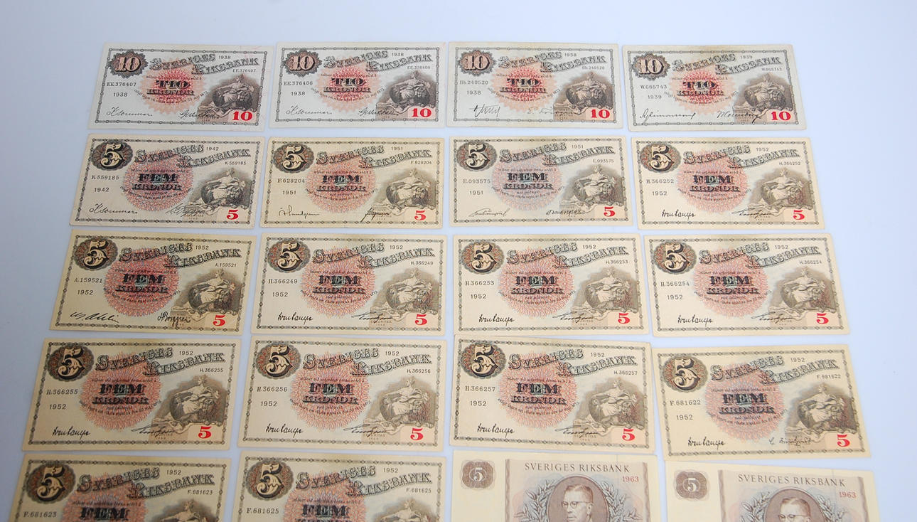 20 st 5 Kr, 1940-50 tal 4 st + 3 st , 1930-tal.