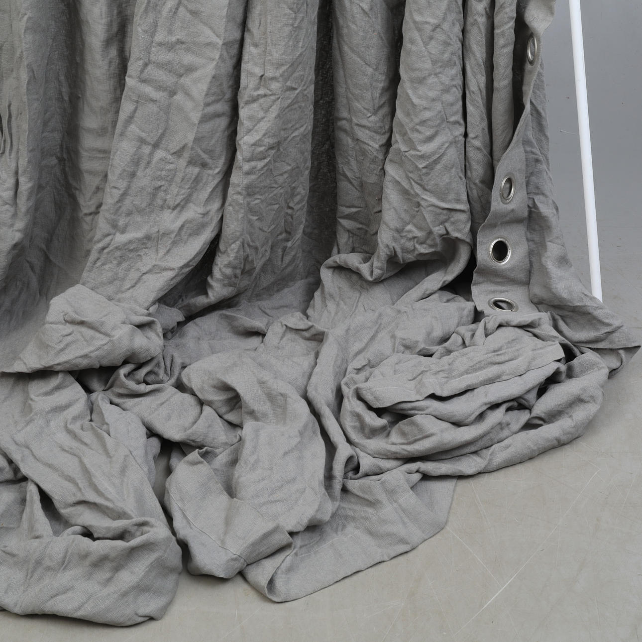TYG/GARDIN i grått linne med öljetter.