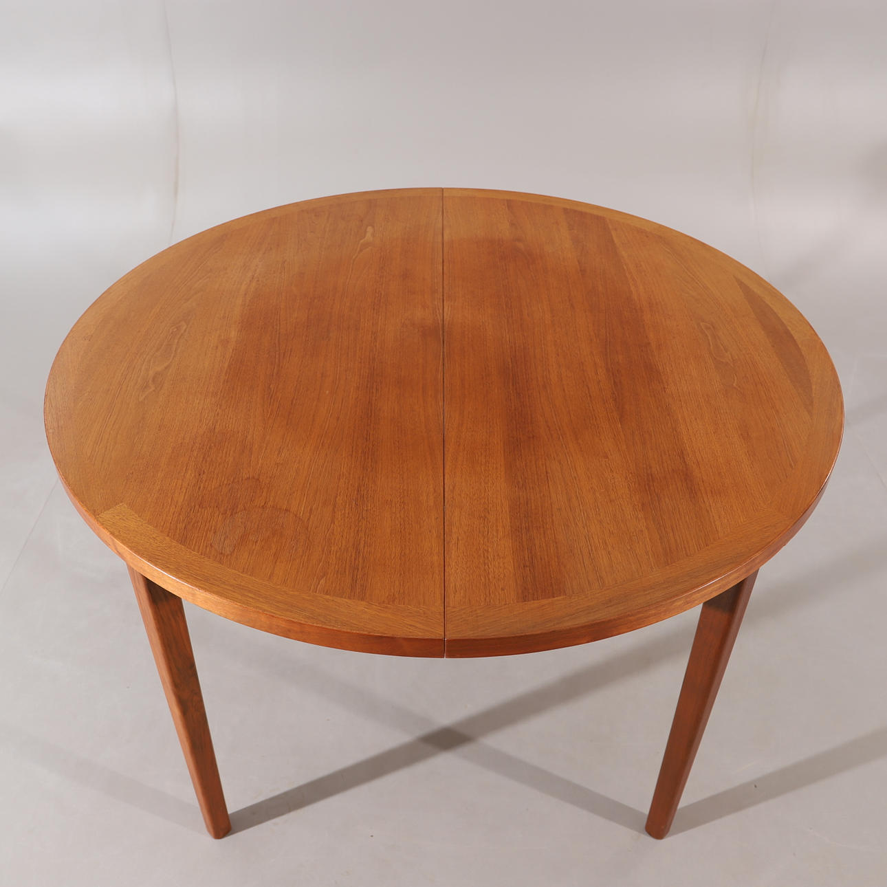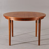 Diameter 110, höjd 72,5 cm samt 2 iläggsskivor med bredd 44 cm.