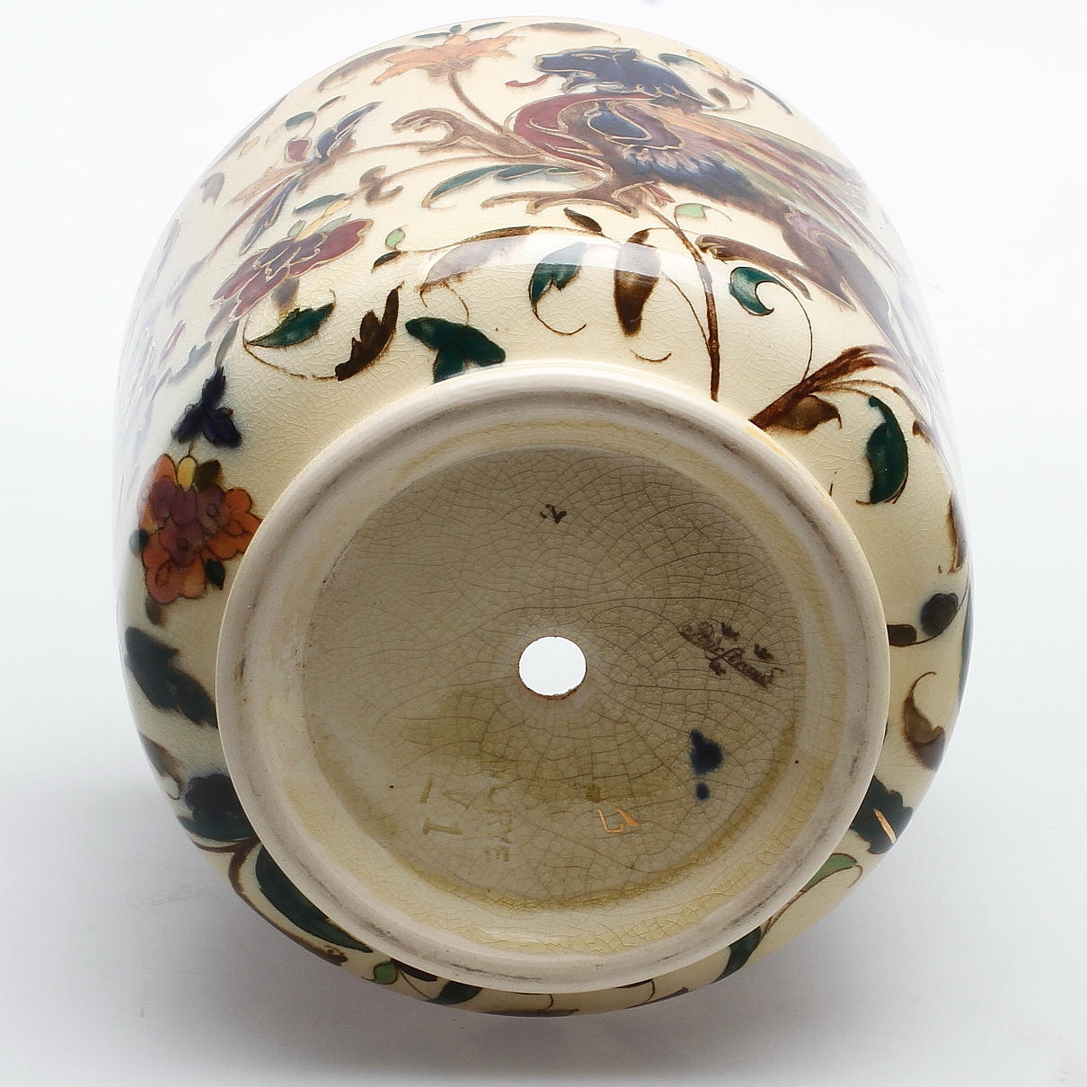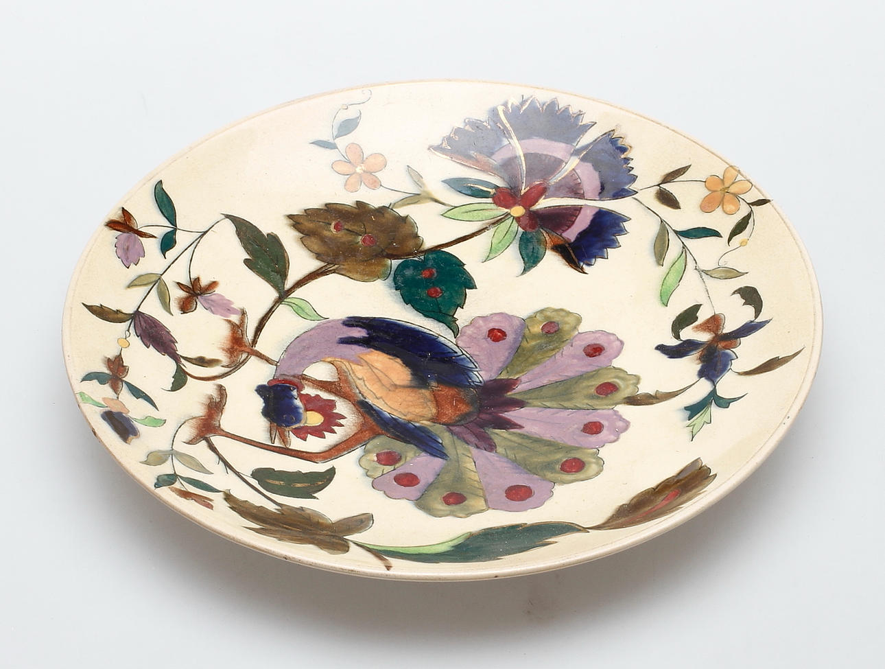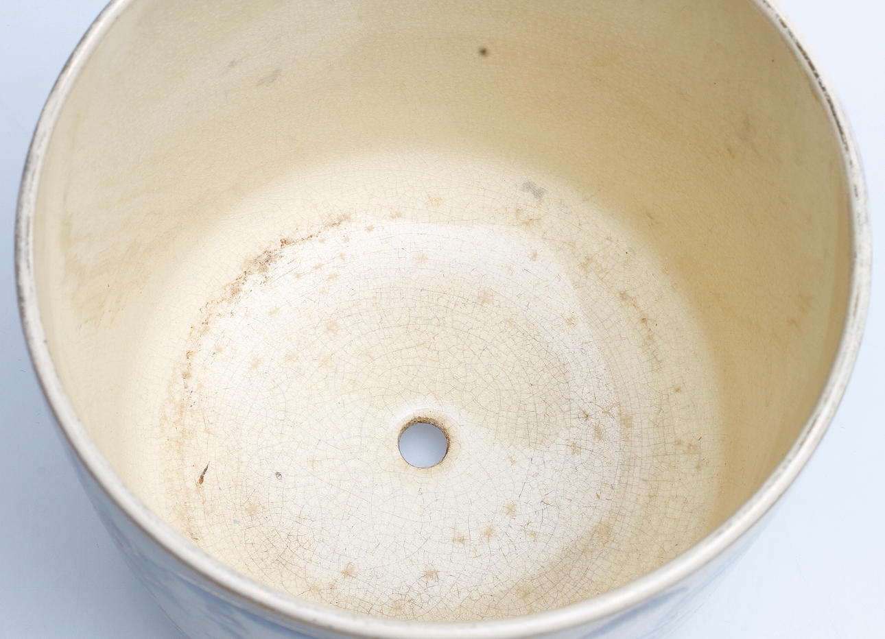 Krackelyr. Missfärgning. Dekor delvis nött.