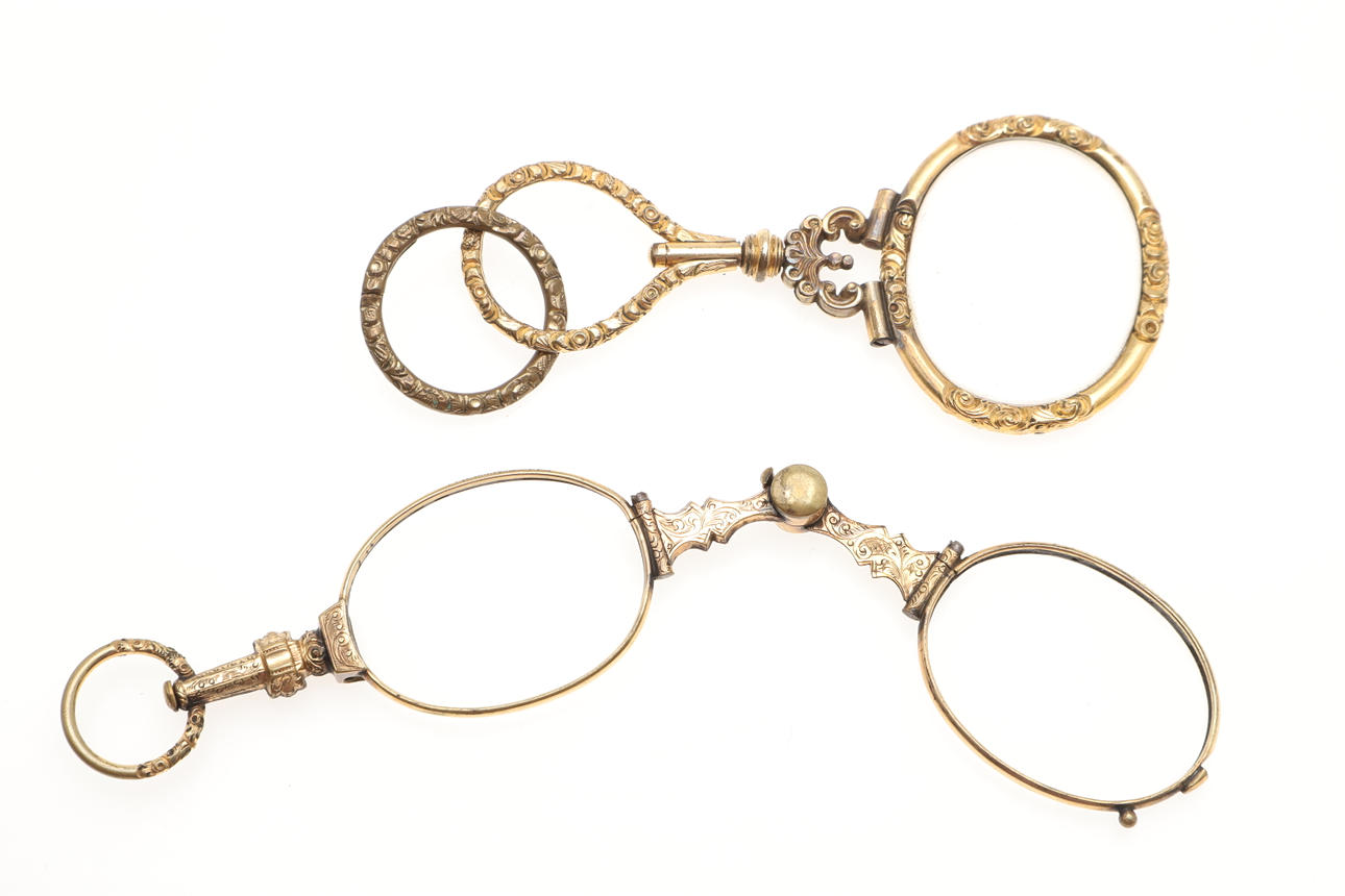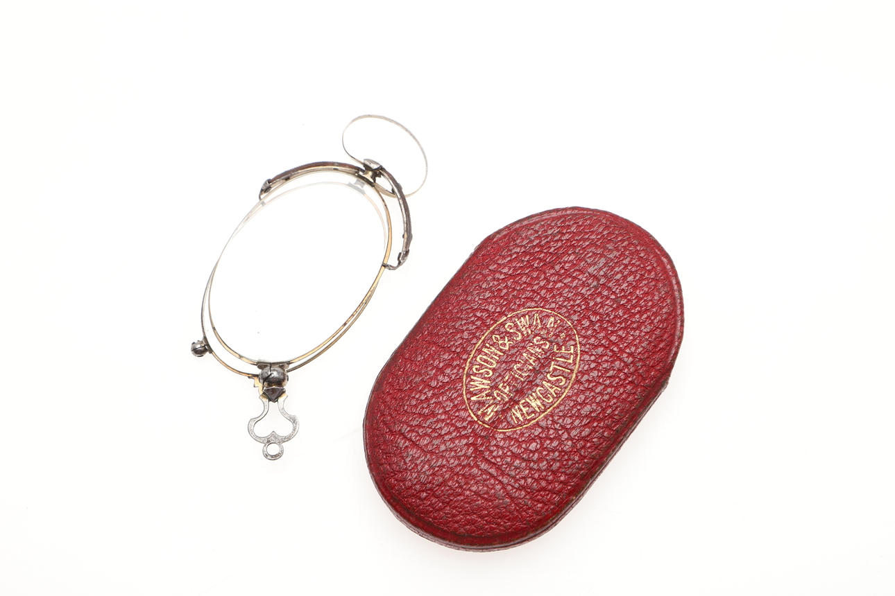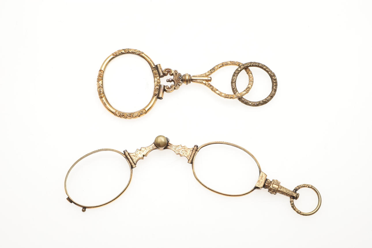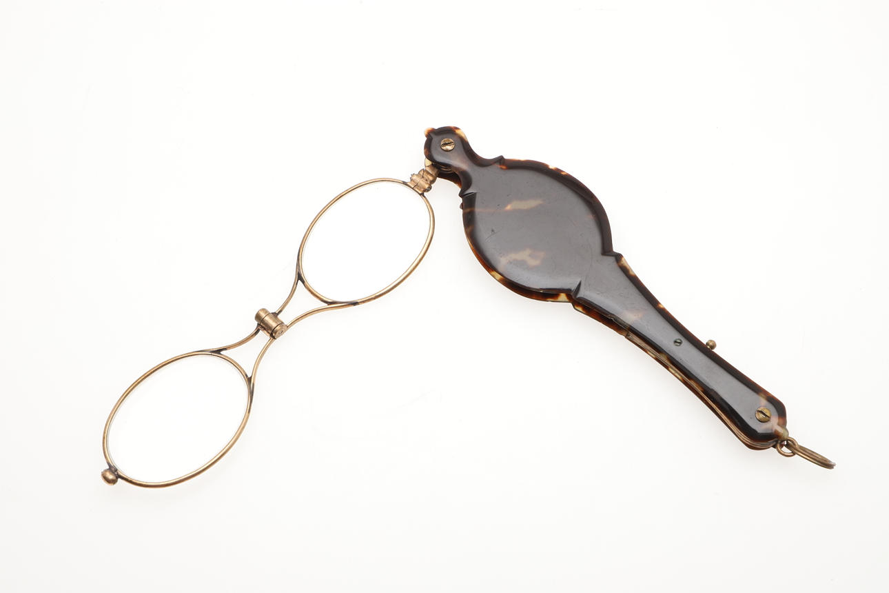 Inklusive en uppsättning sköldpaddsskal och förgyllda metalllorgnetter, tre andra lorgnetter (en i läderfodral, en med glas saknas) och en japansk blandad metallbläckbrunn.