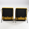 Stommar i svartlackerad metall. Sitsar klädda med gul plyschklädsel. Sitshöjd 45 cm.