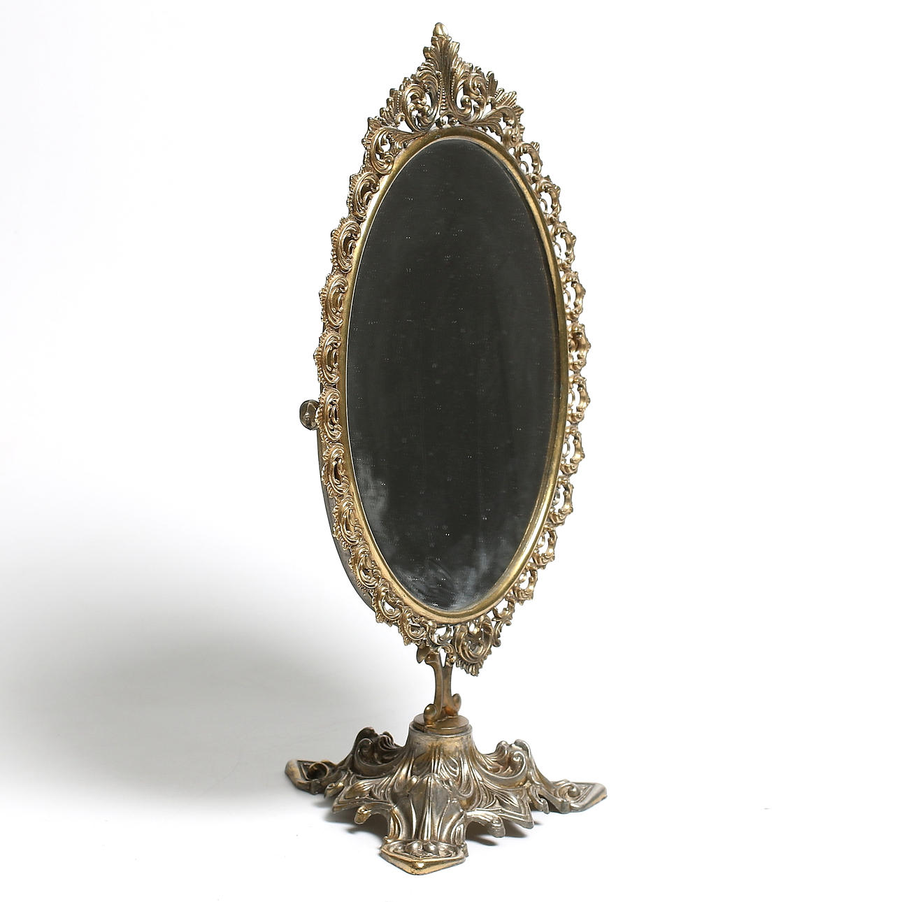 Gulmetall. Fällbar spegel. höjd 49 cm.
