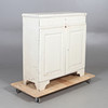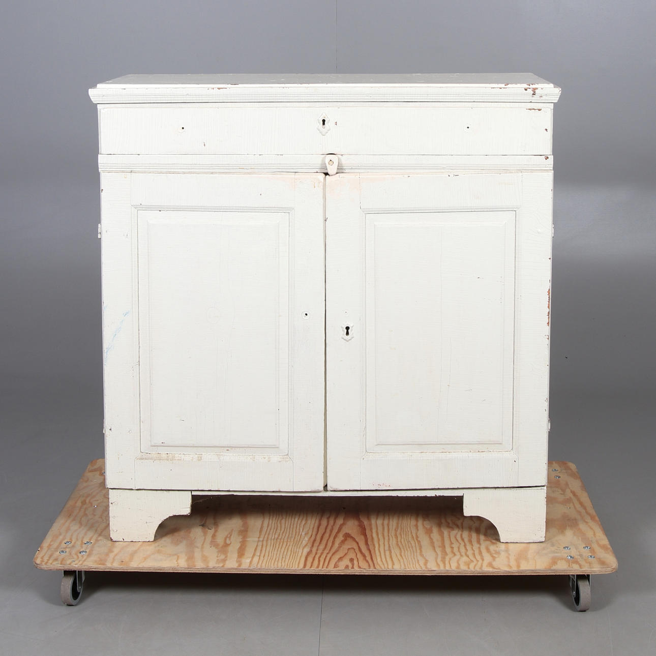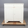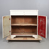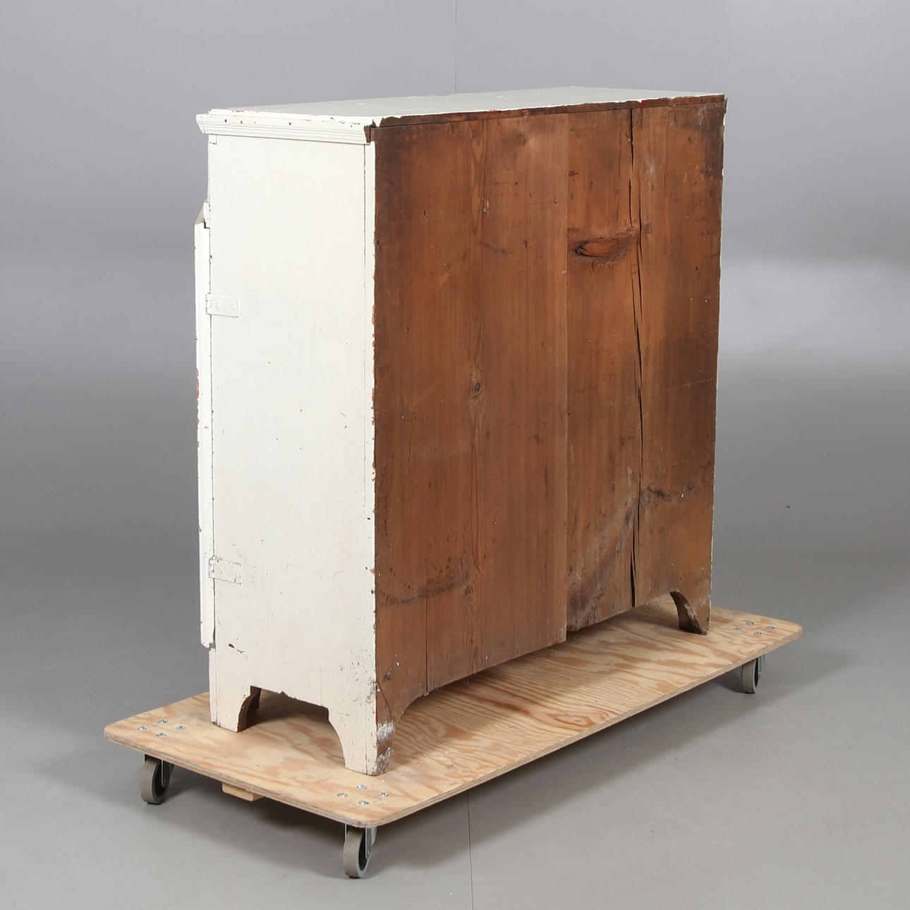 Dörrpar med bakomliggande hyllor. Två lådor i överkant. Senare bemålad.