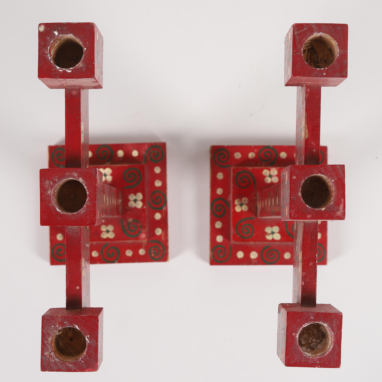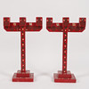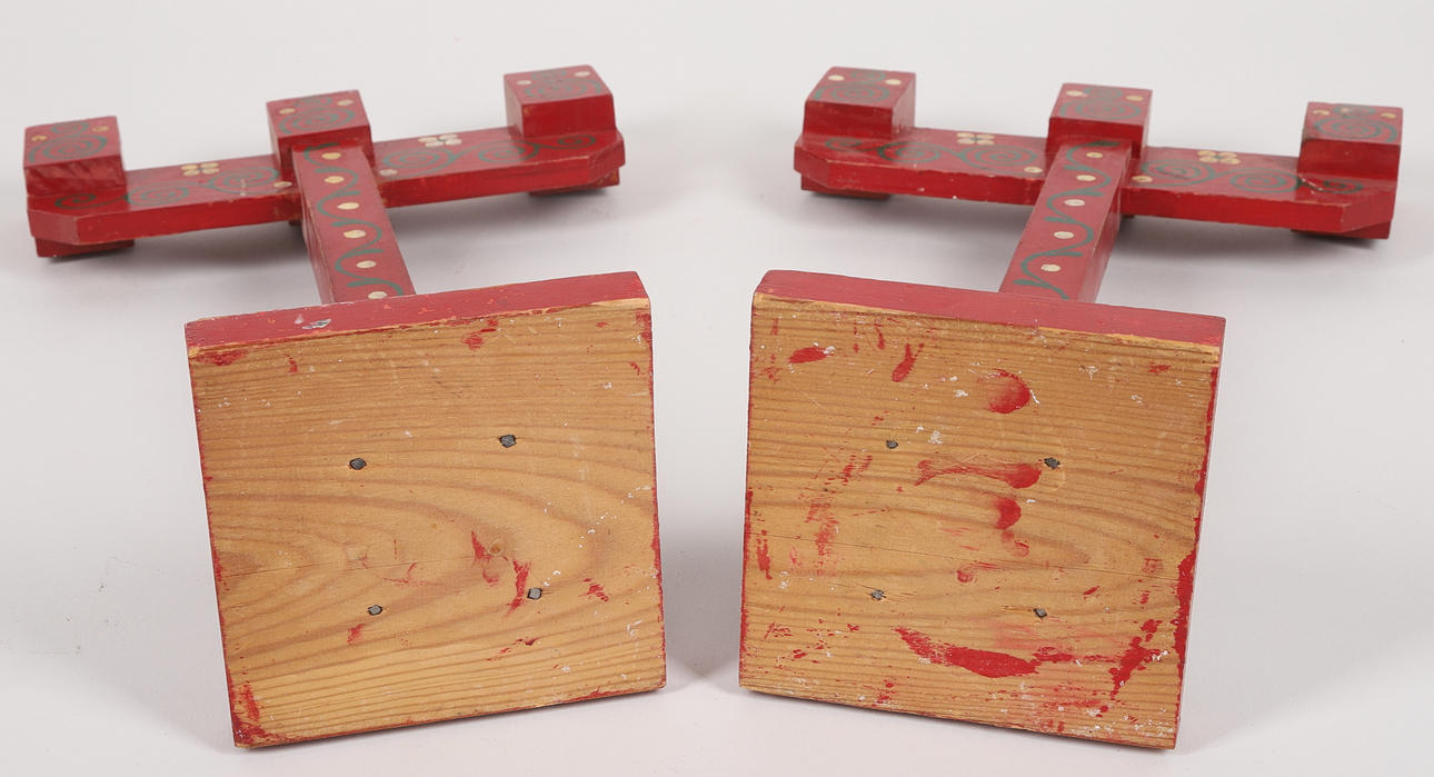 3191141. LJUSSTAKAR, ett par, bemålad trä, röd.