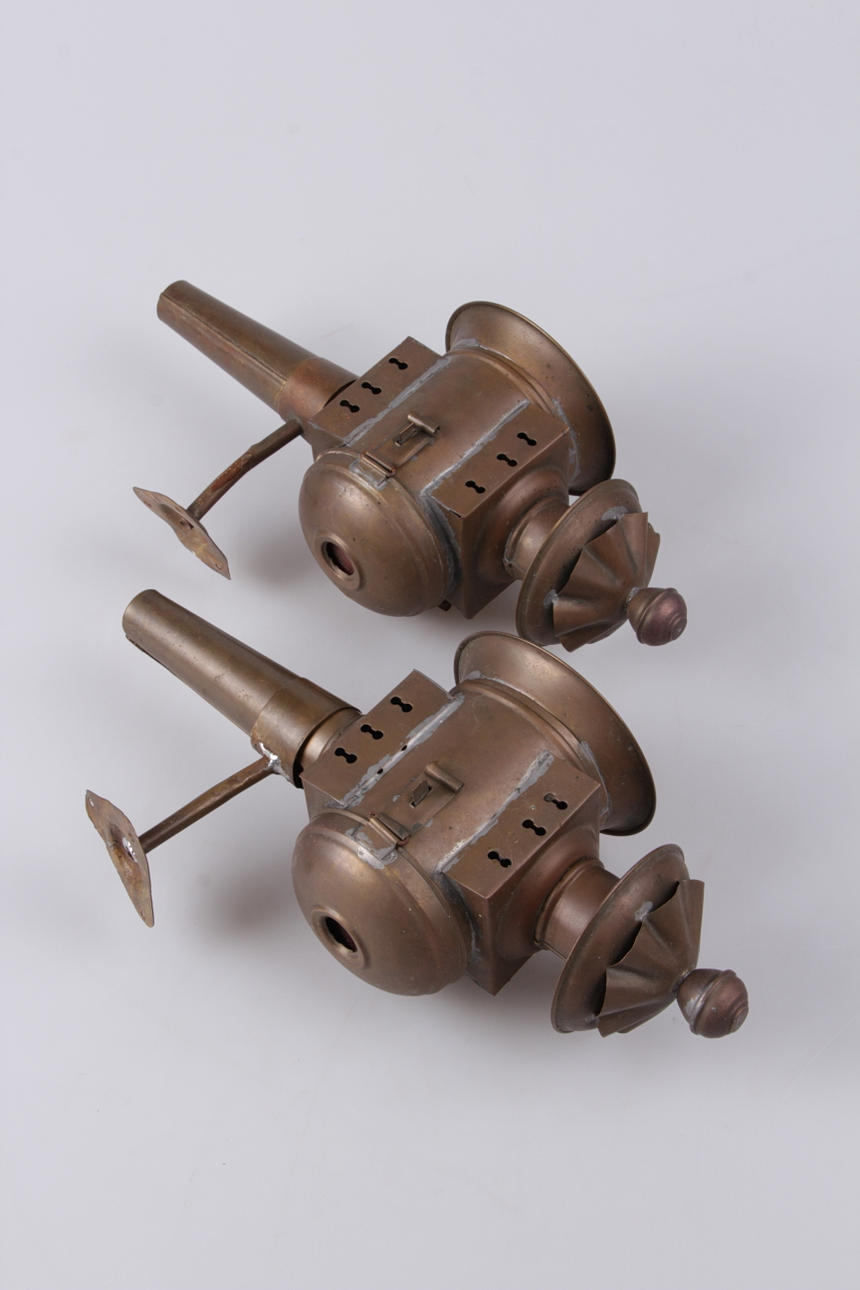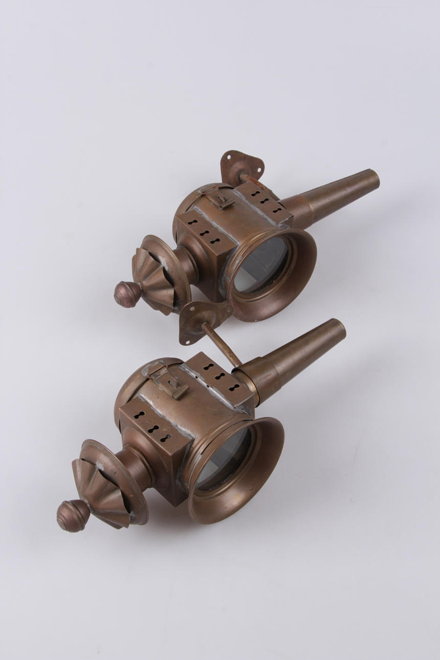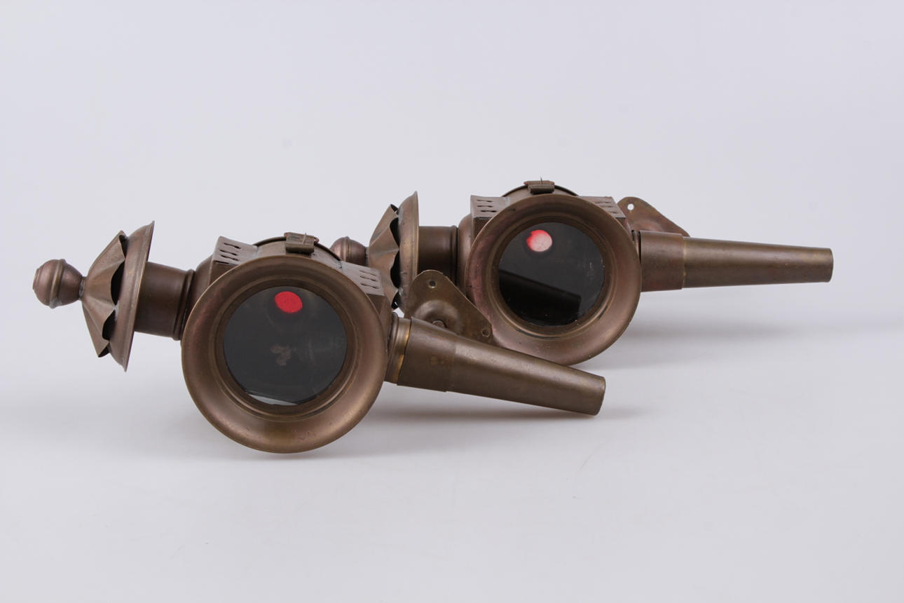 319151. VAGNSLYKTOR, ett par, mässing och glas.