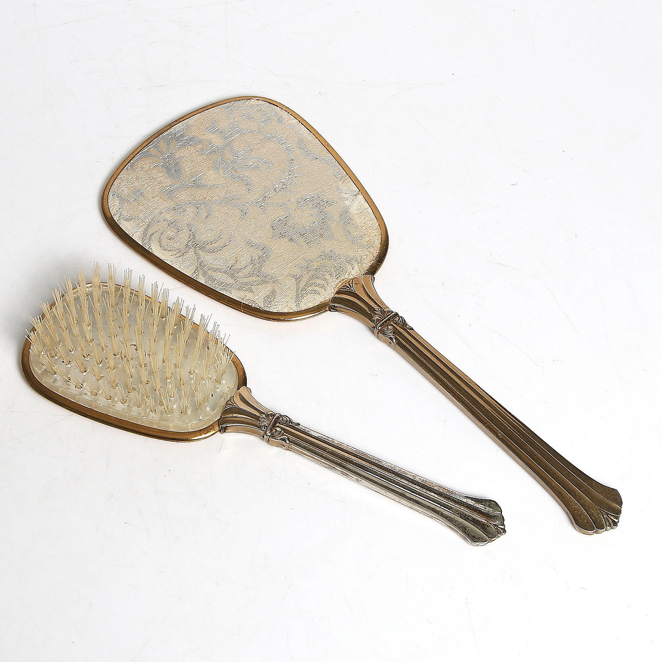 SPEGEL samt BORSTE, nysilver. 1900-tal.