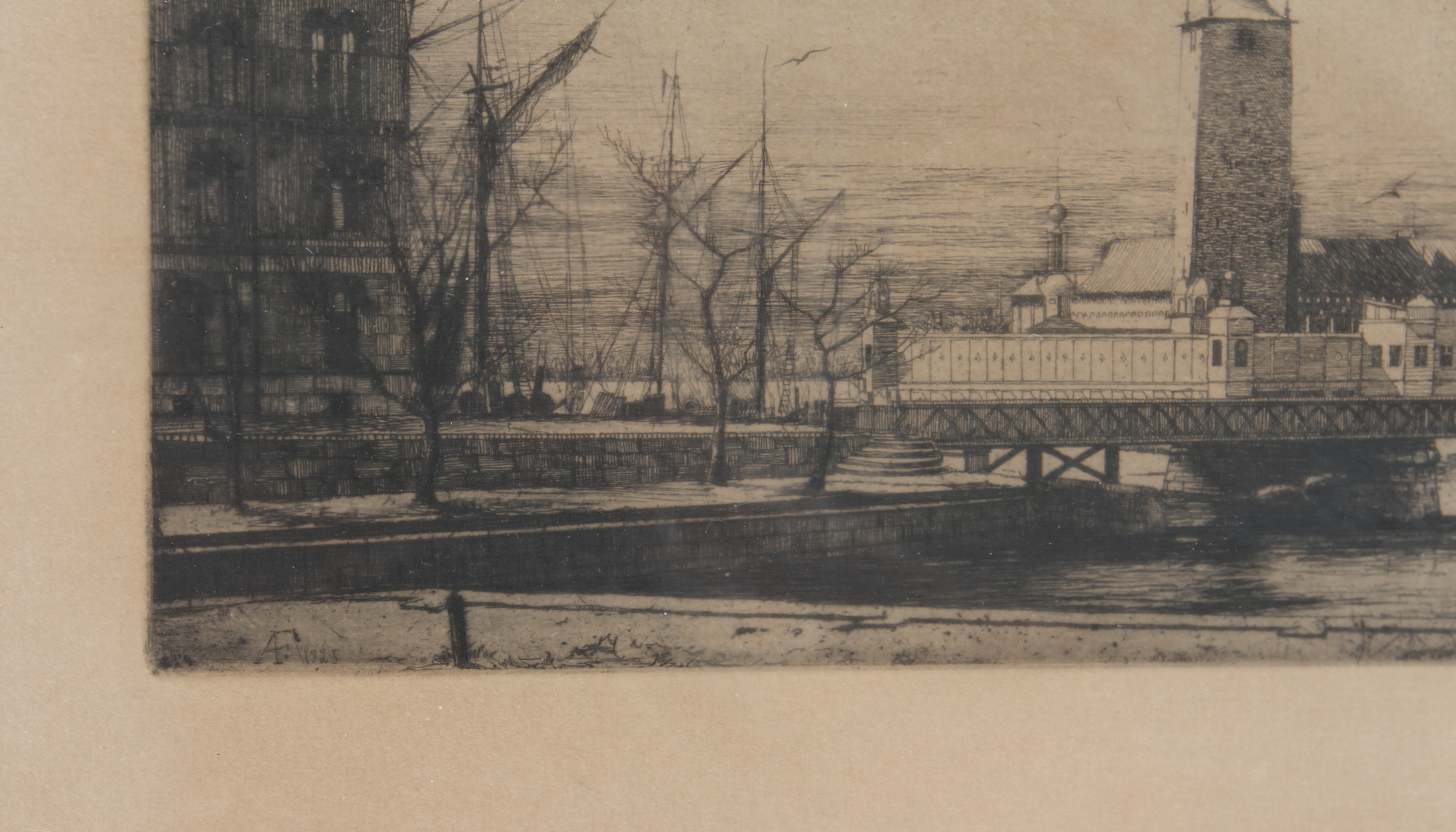 31965. AXEL FRIDELL. Torrnål. Stockholmsbild, signerad.