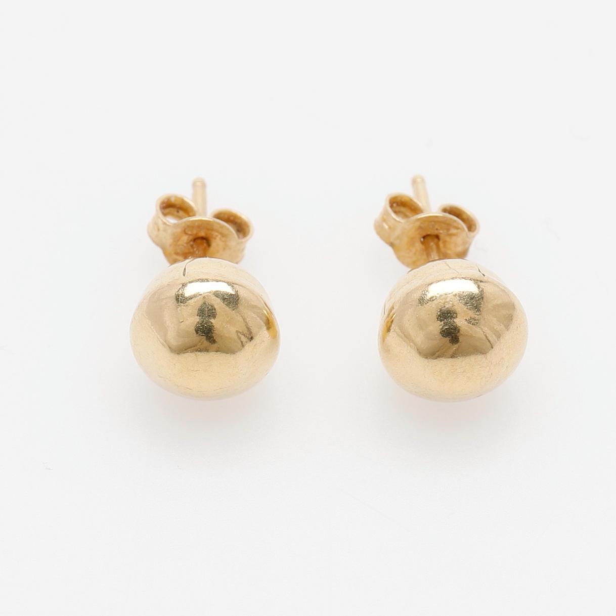 Närmast kulformade, 18k guld, med stift, diameter 8 mm, vikt 2,5 gram.
