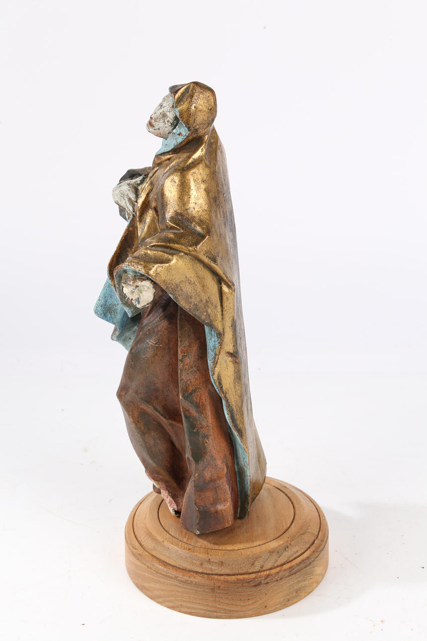 MARY, polykrommålad figur, 1900-talets första hälft, föreställande Mary iklädd en gyllene kappa, 35cm hög.