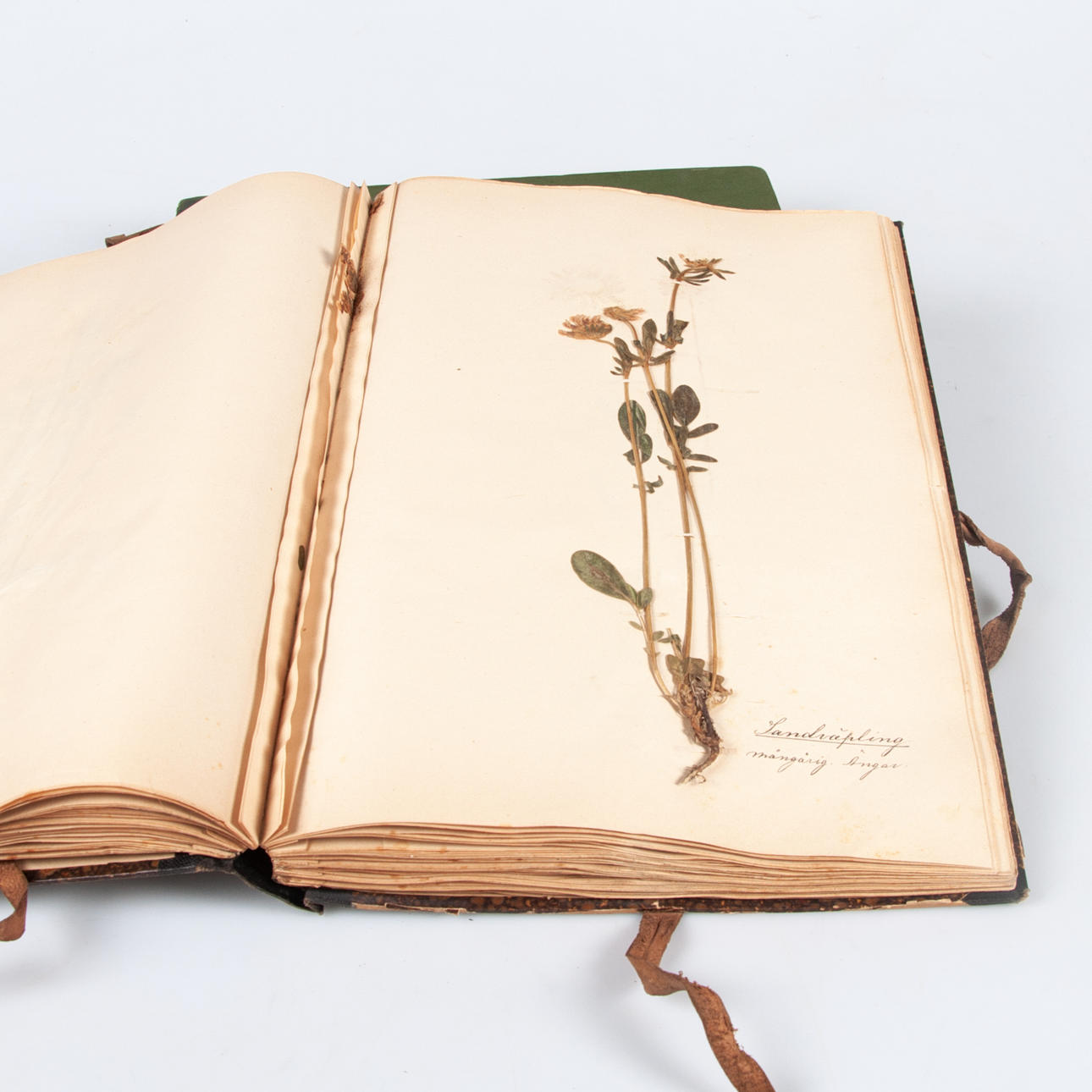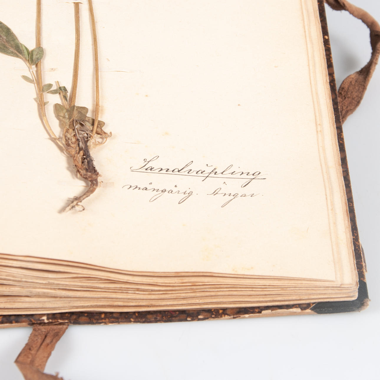 * Märkbok med torkade växter, hård pärm med läderband. 1900-talets första del. Gott skick