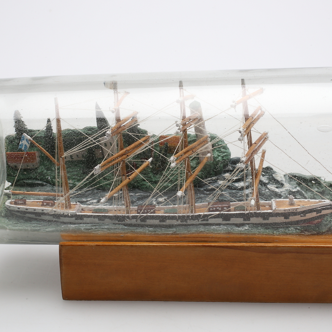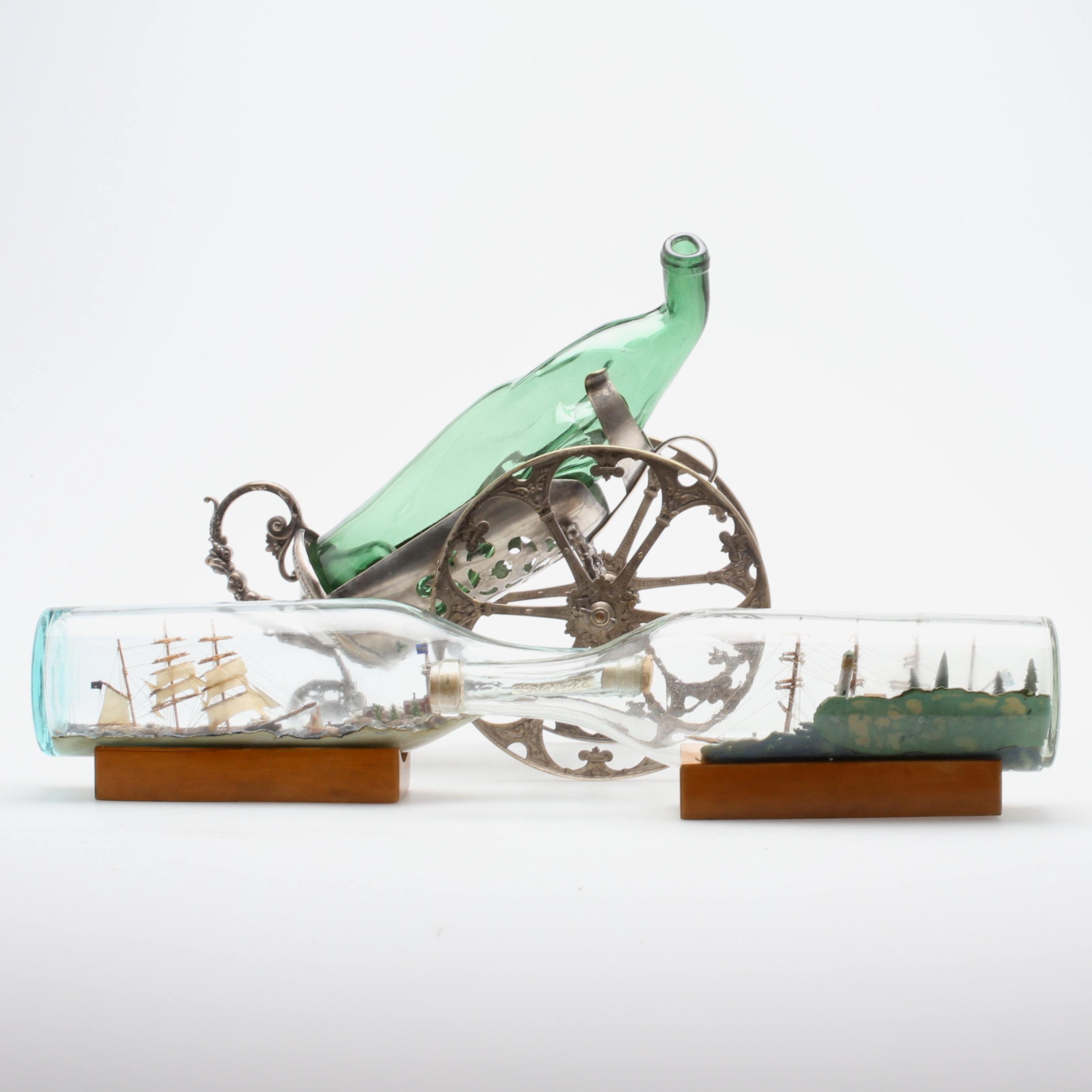 320110. FLASKSTÄLL, samt FLASKSKEPP, 2 st, 18-1900-tal.