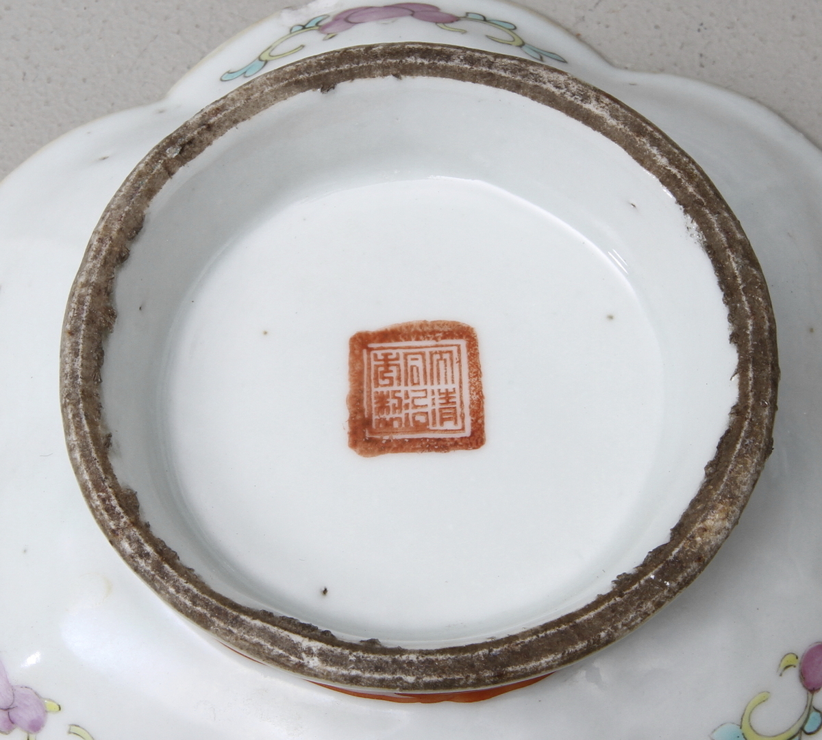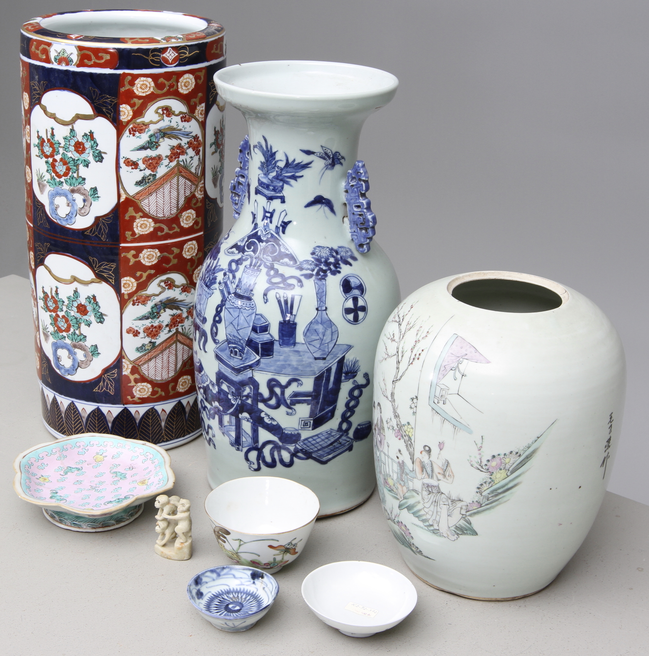 32029. OSTINDISKA FÖREMÅL, 7 delar, porslin och sten.