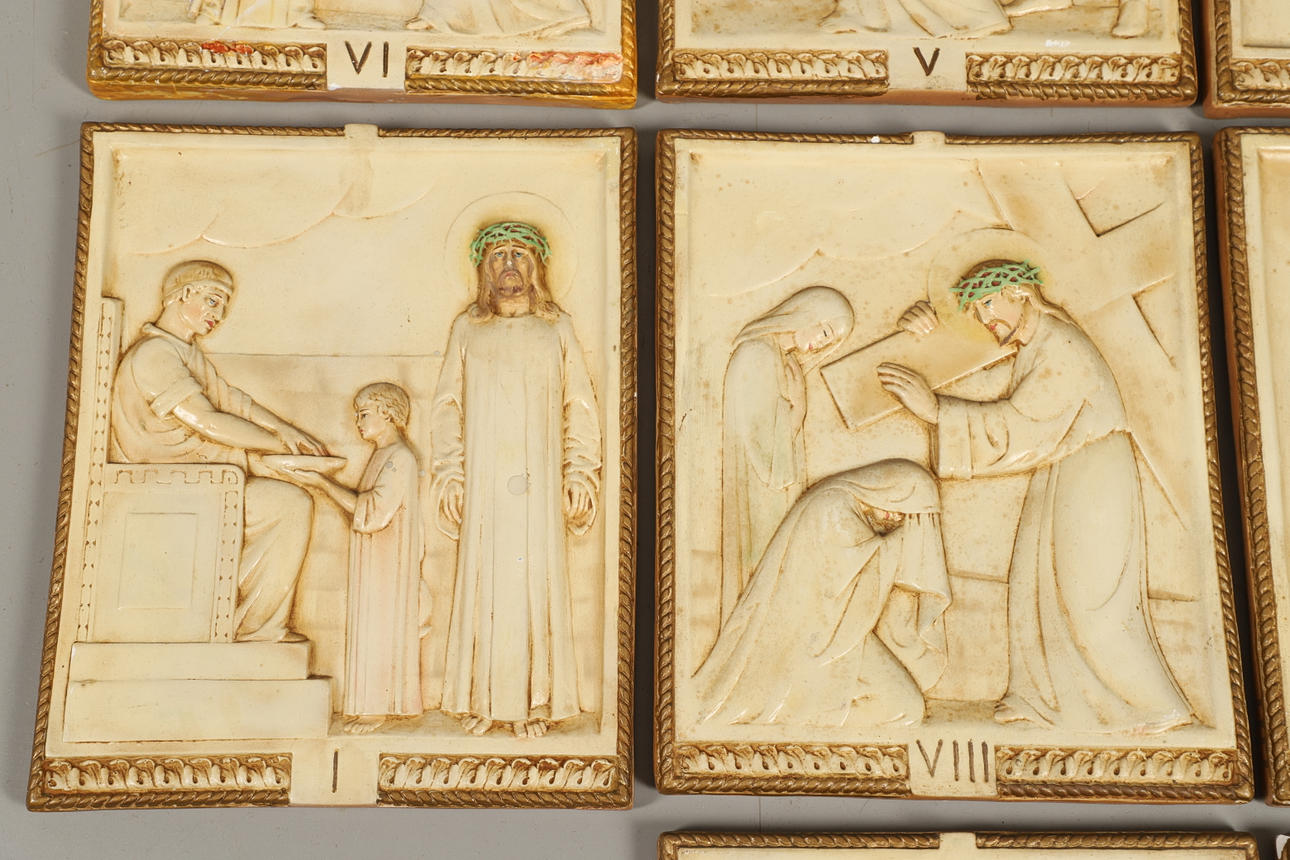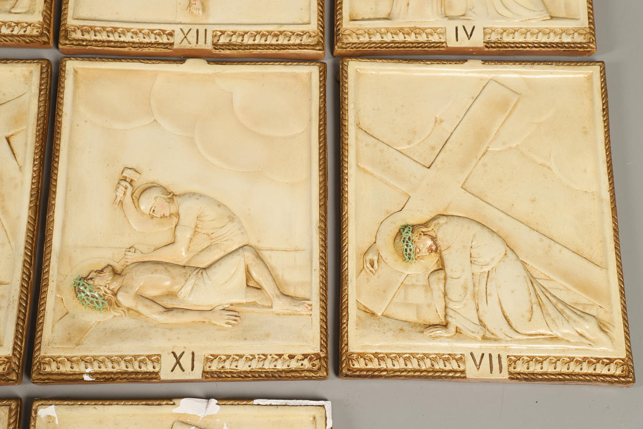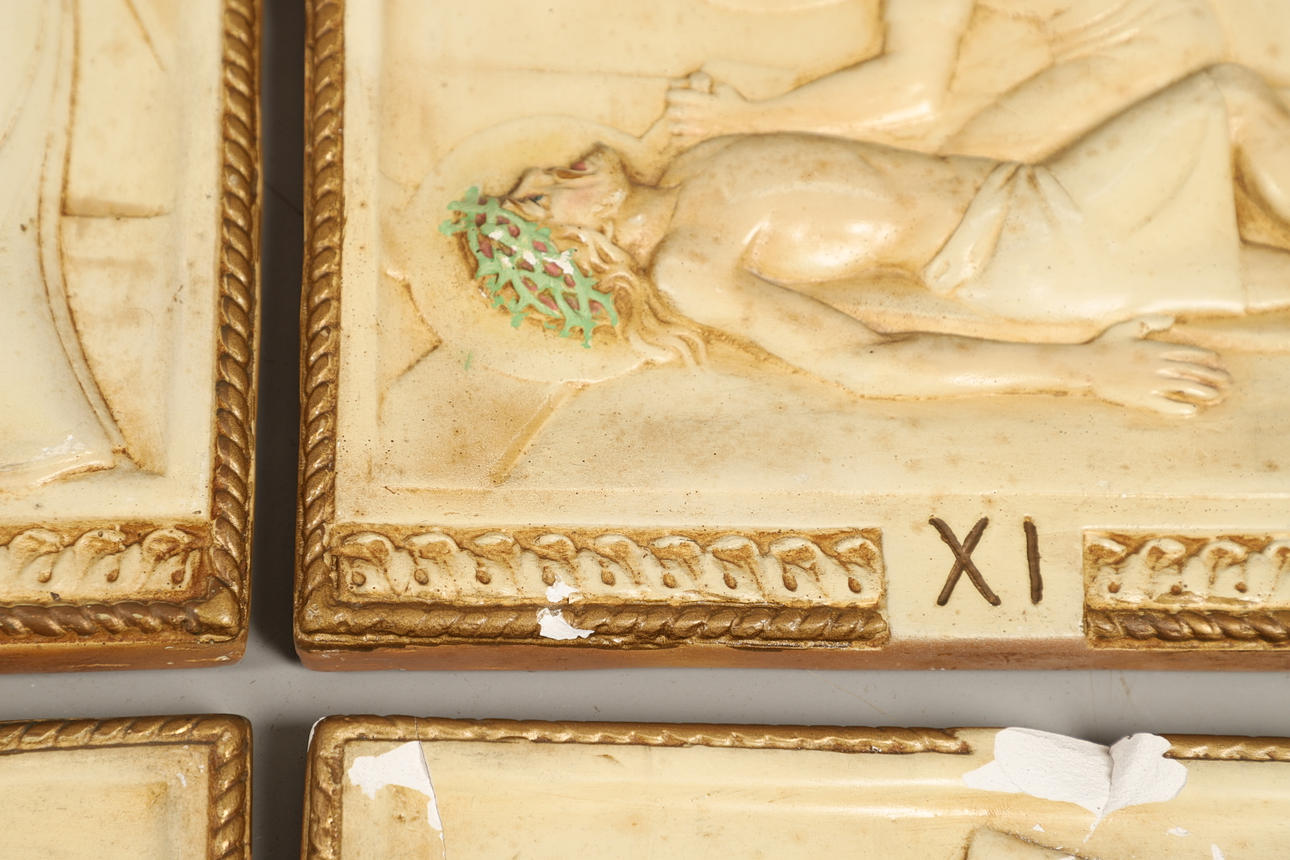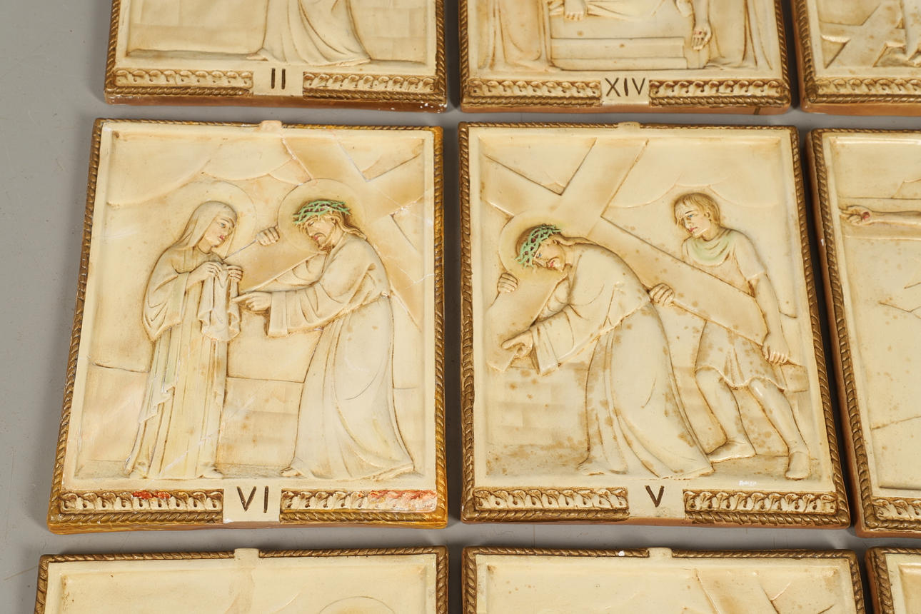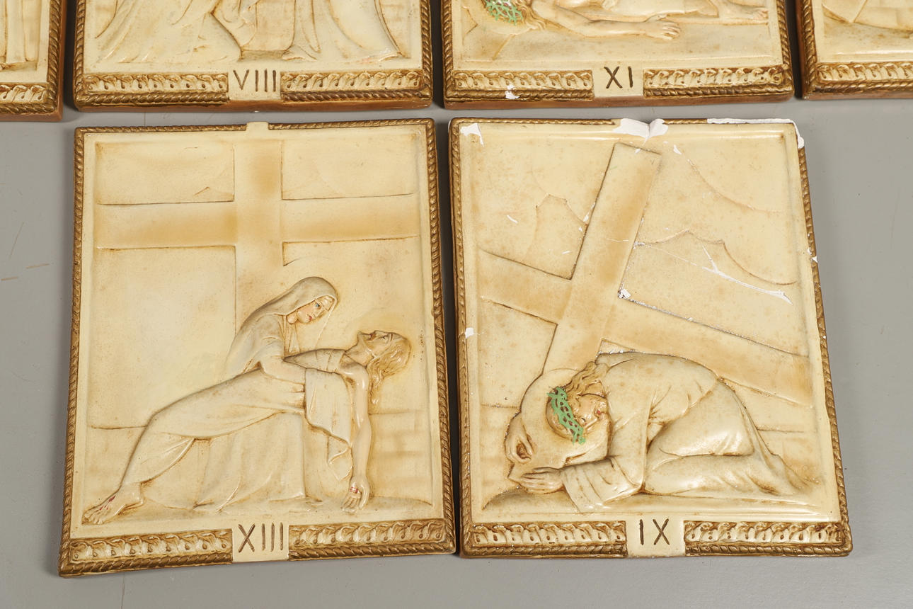 visar stadierna av Kristus som korsfästes, vardera 38cm x 31cm.
