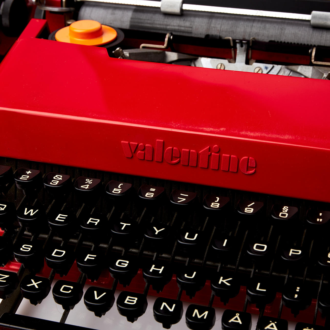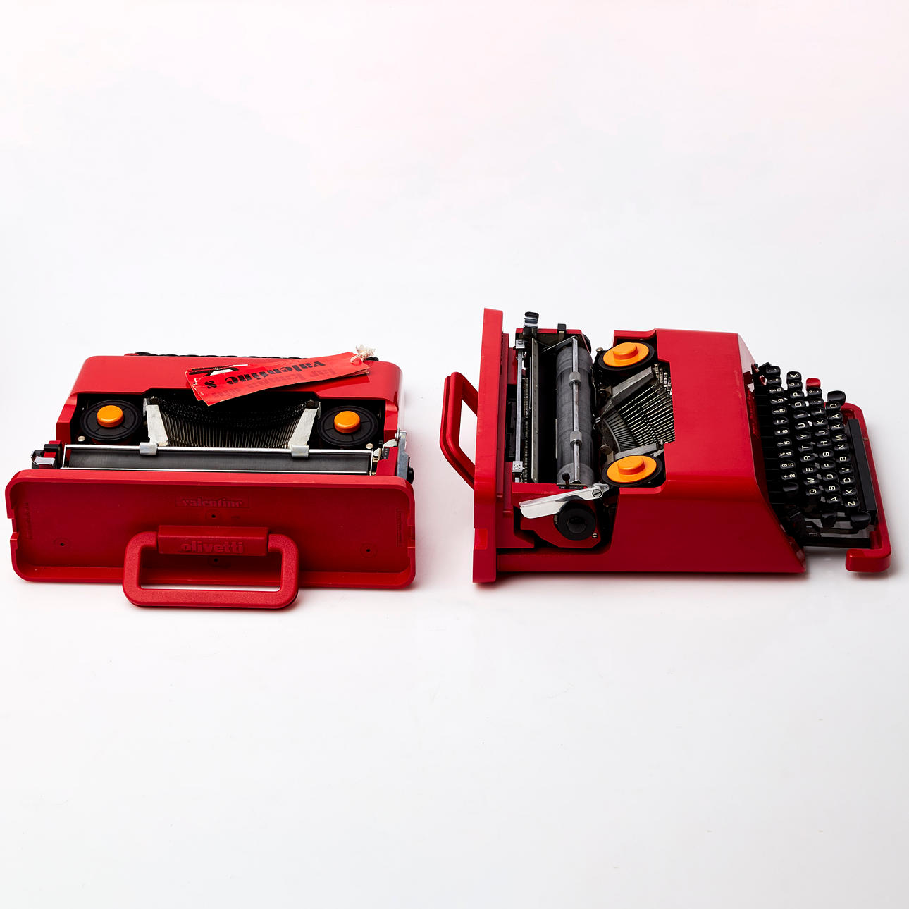 SKRIVMASKINER I ORIGINAL VÄSKA, 2 st, Olivetti Valentino, 1969.