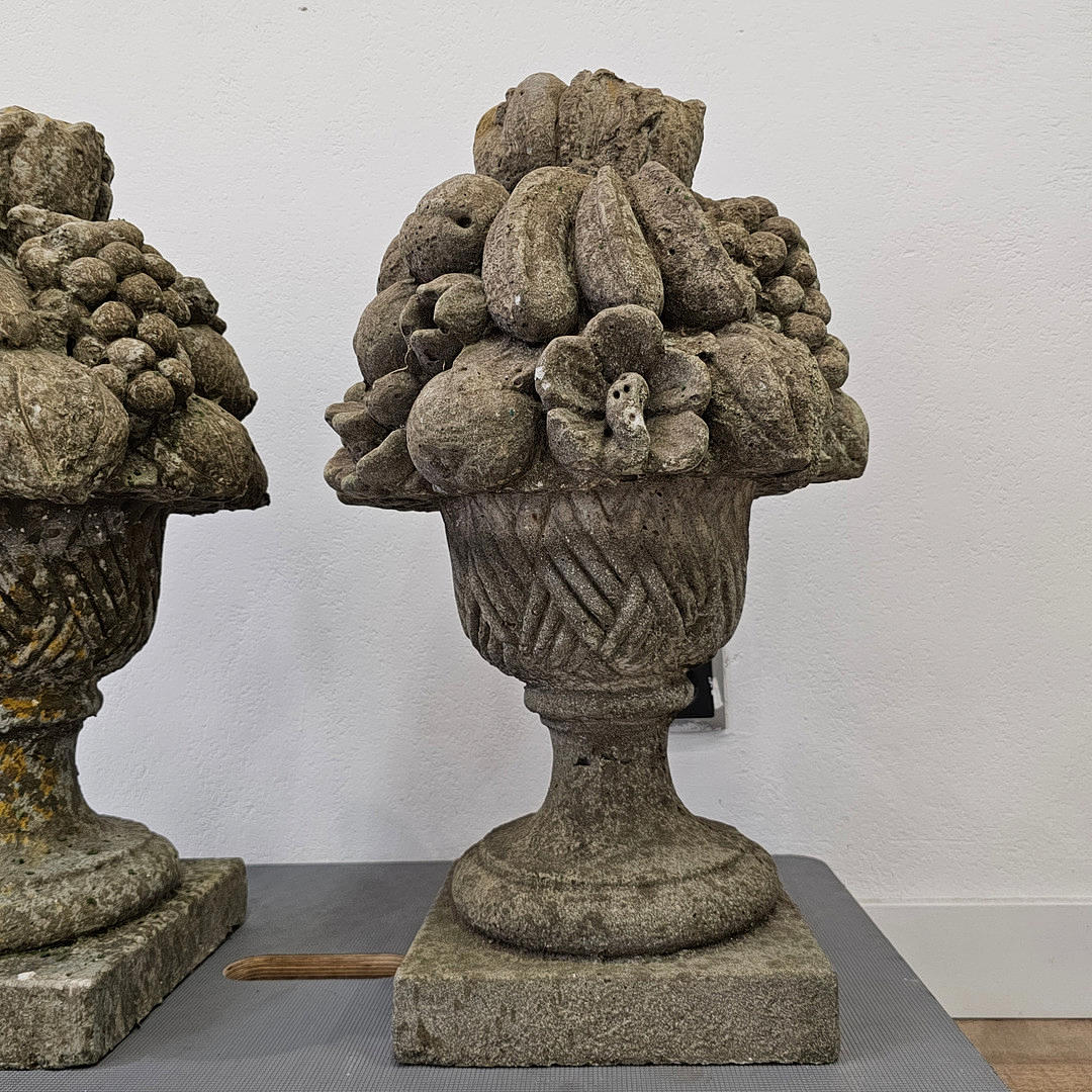 STORT PAR FRUKTBUKETTER I SANDSTEN.