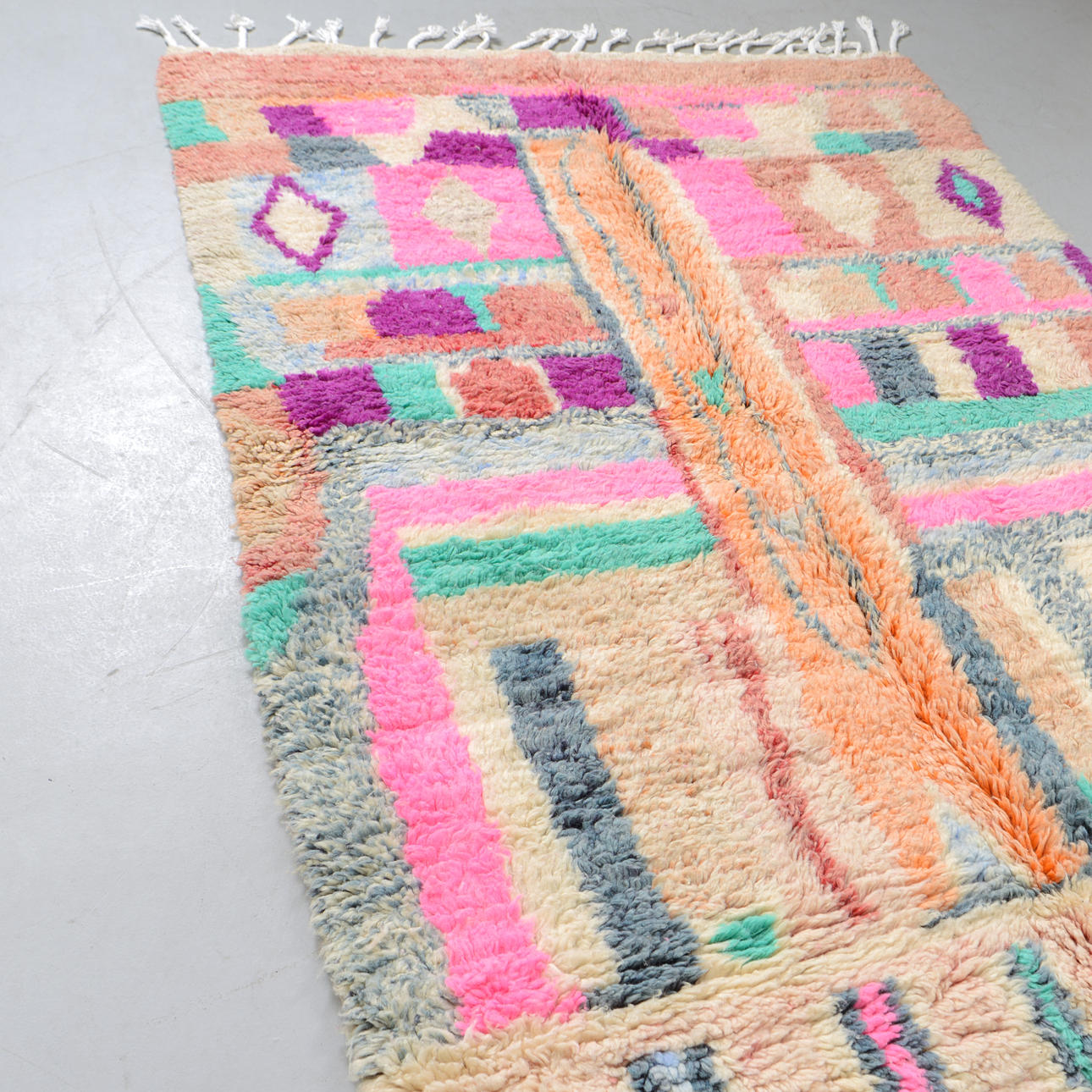 Handknuten matta i ull från Azilal-regionen i Marocko.