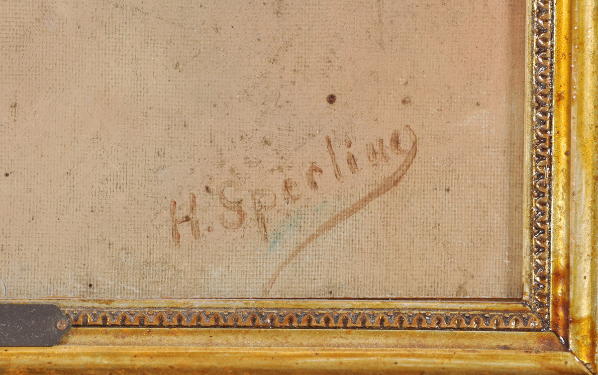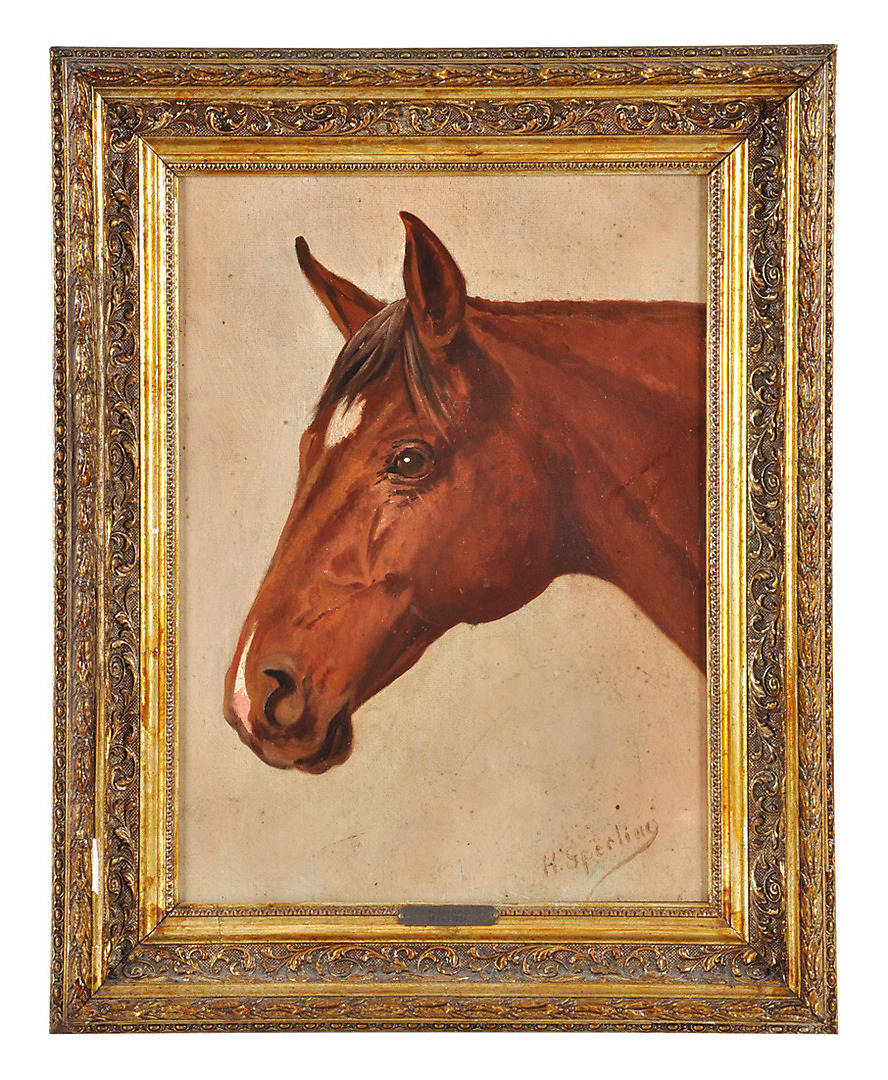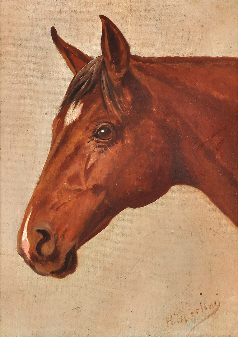 320473. HEINRICH SPERLING. Hästhuvud i profil. Oljemålning på tavla.