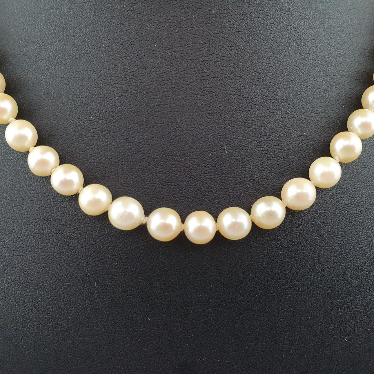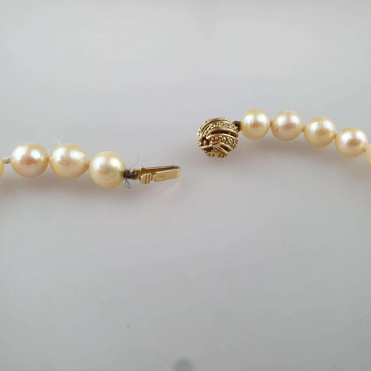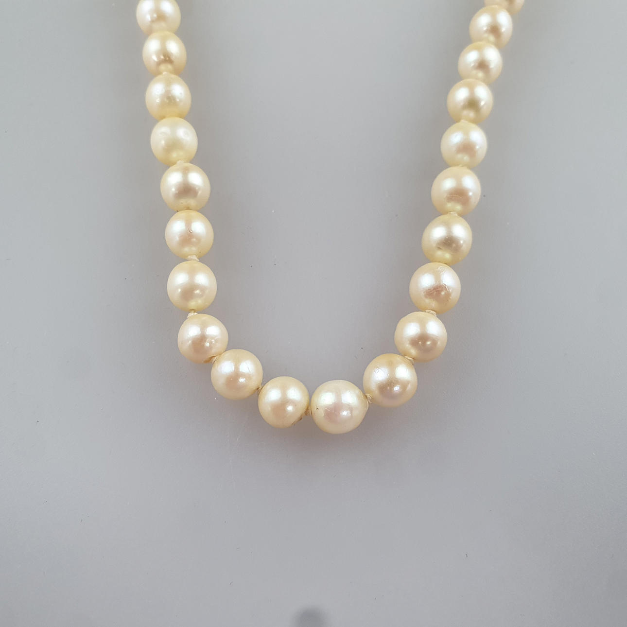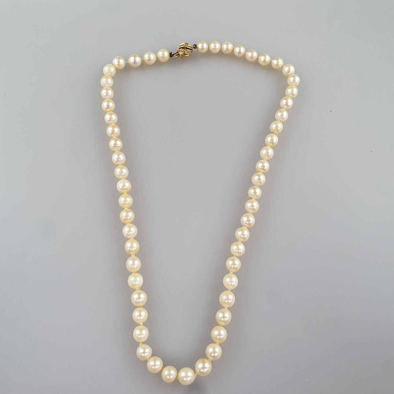 3204869. - PÄRLCOLLIER med guldlås, längd ca. 46 cm.