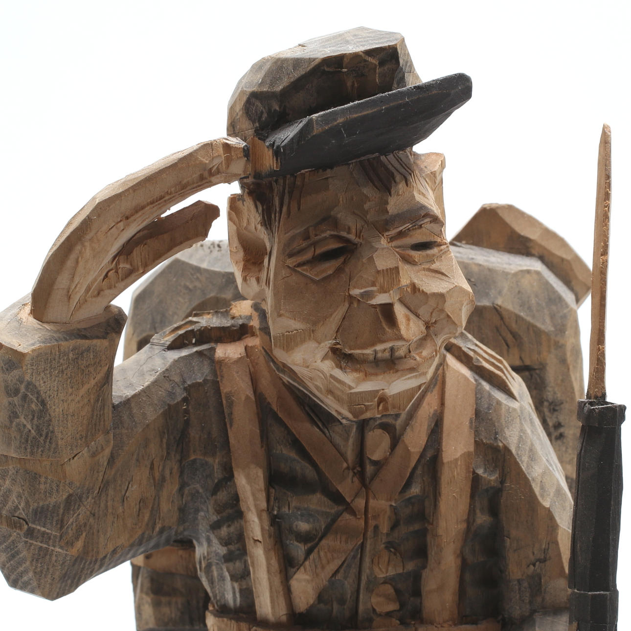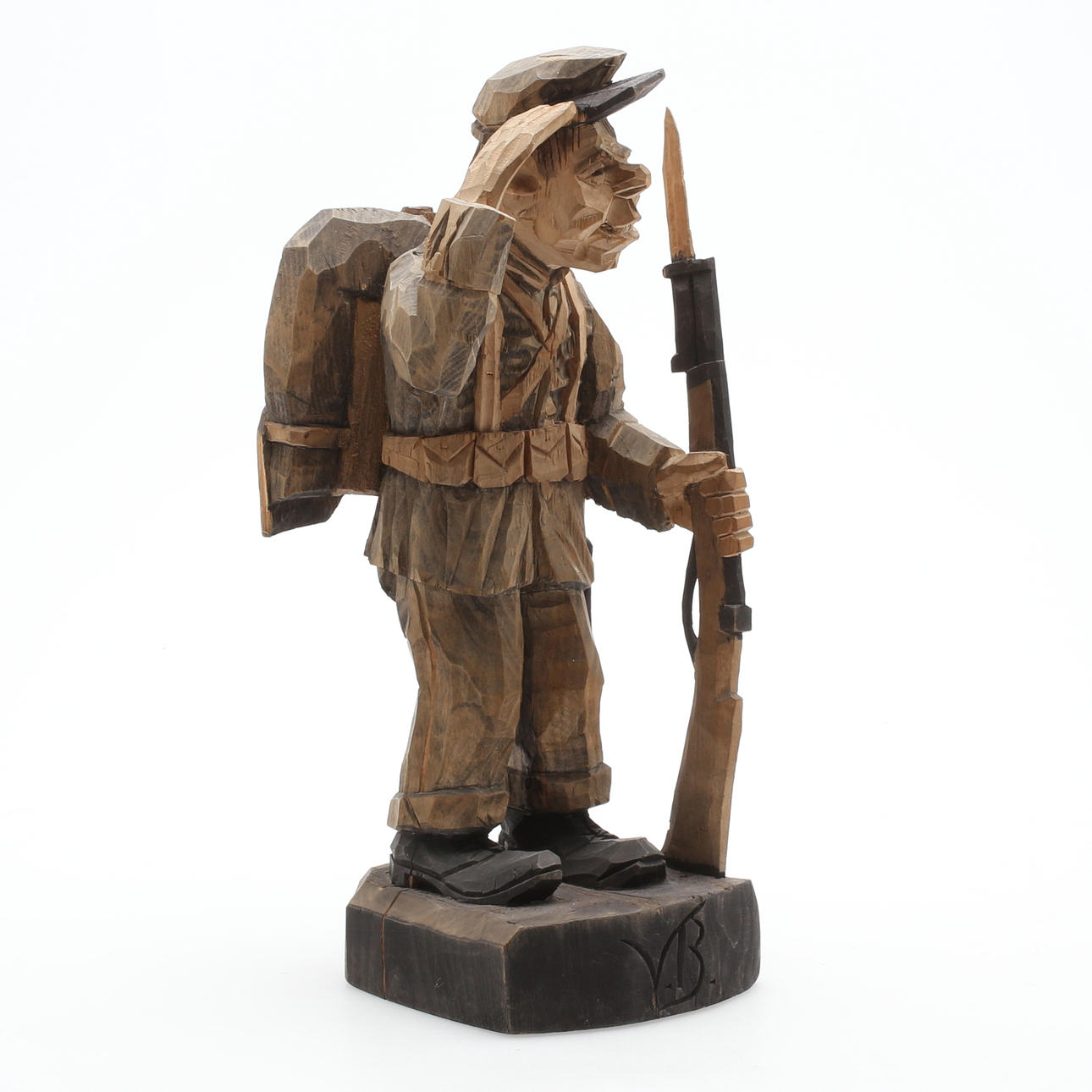 Föreställande beväring som gör honnör. Höjd 30 cm.