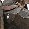 Bruksslitage, torrsprickor, liten skada på spaden på ryggsäcken.