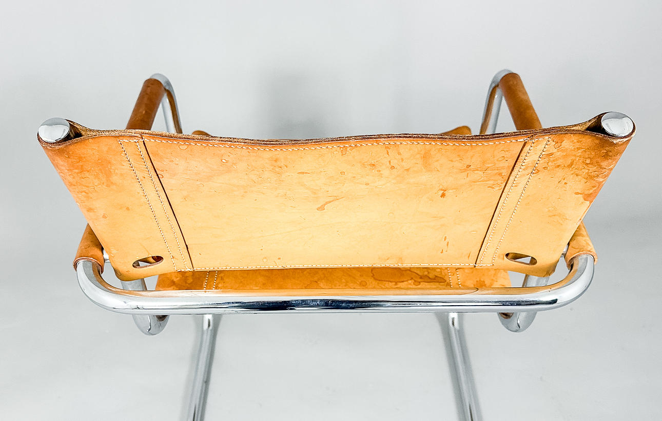 Kromad ram, skinn. Skinnklädda armstöd.