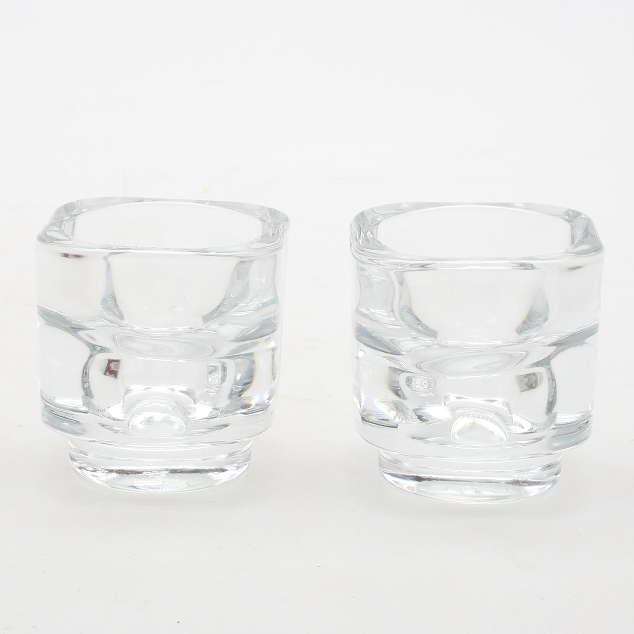 Ett par ljusstakar, klarglas.