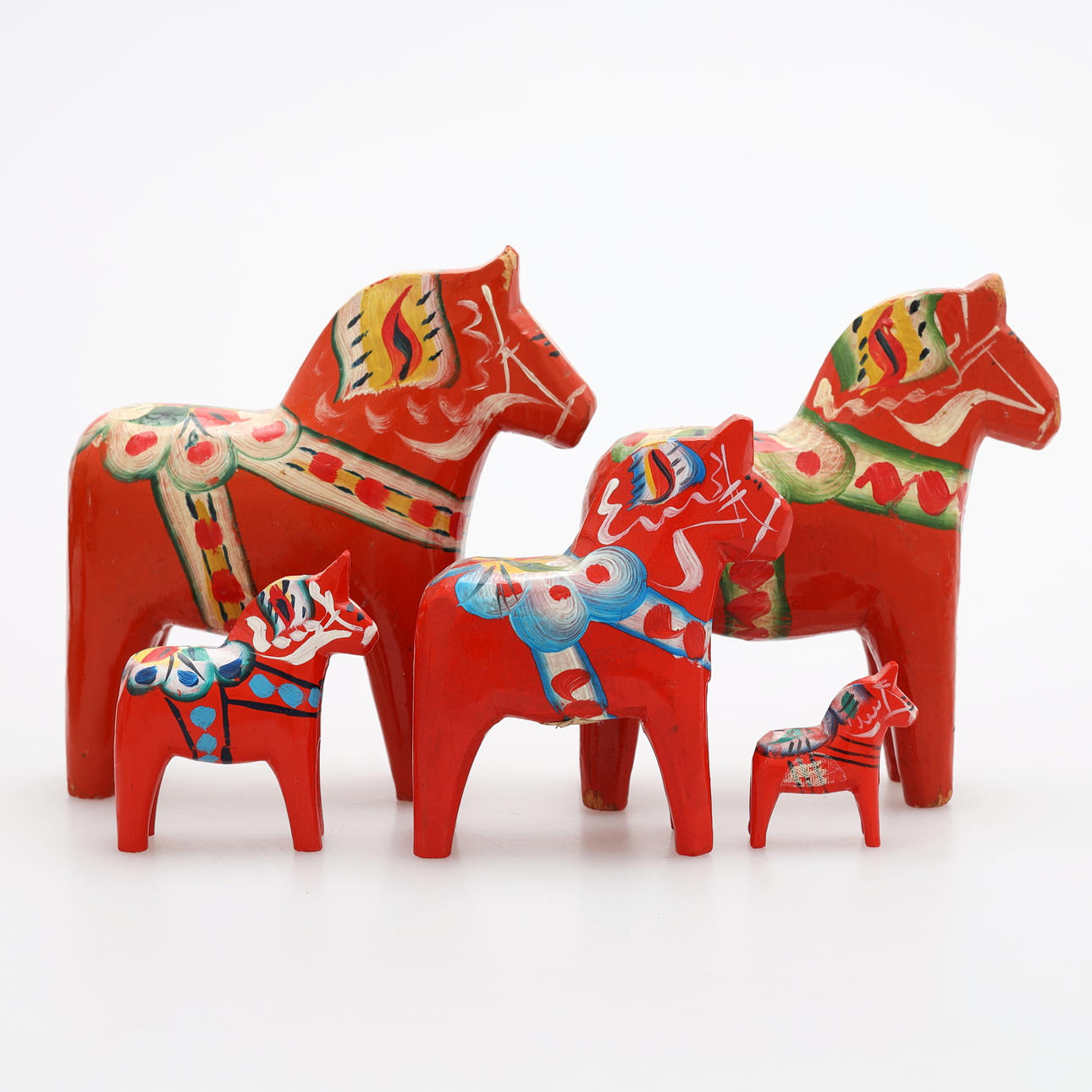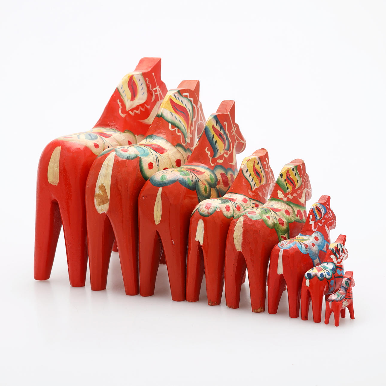 DALAHÄSTAR, 8 st, bemålat trä, 1900-talets mitt.