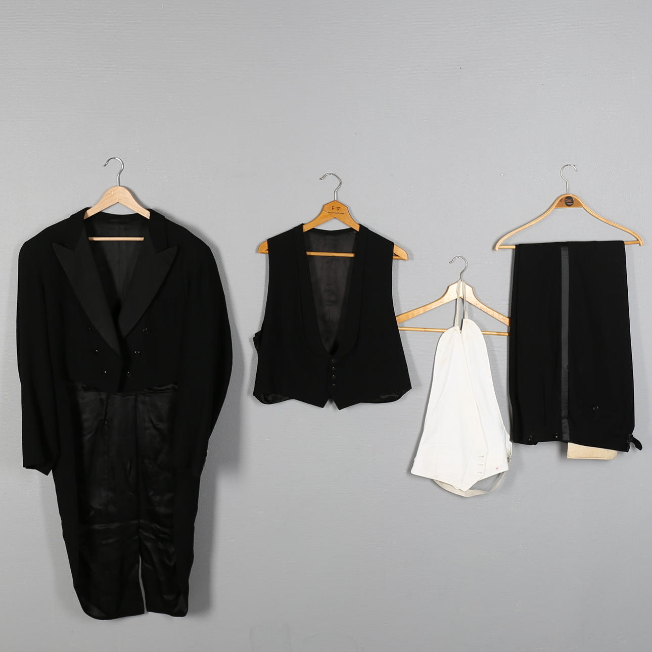 Väst ettikettmärkt 56 och frackbröst märkt 54.
