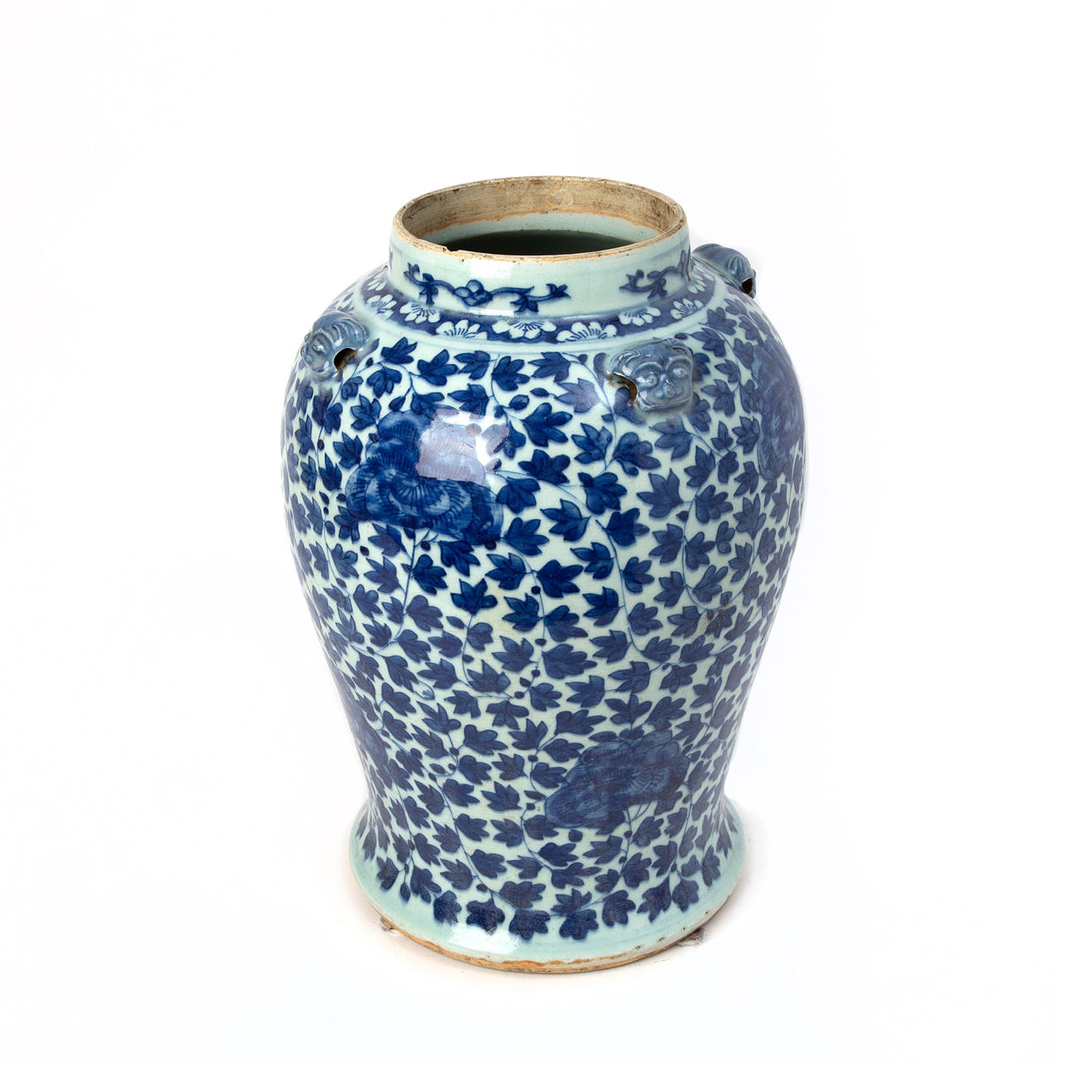 Floral dekor i underglasyrblått. Höjd ca 37 cm.