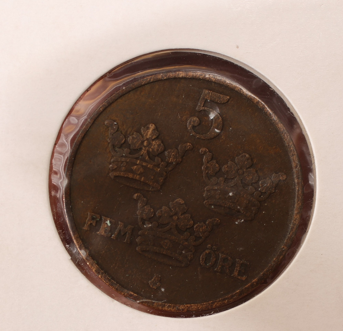 3207740. MYNT, 5 öre, koppar, år 1910.