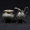 Sockerskålens höjd 6, kannans höjd 9 cm.