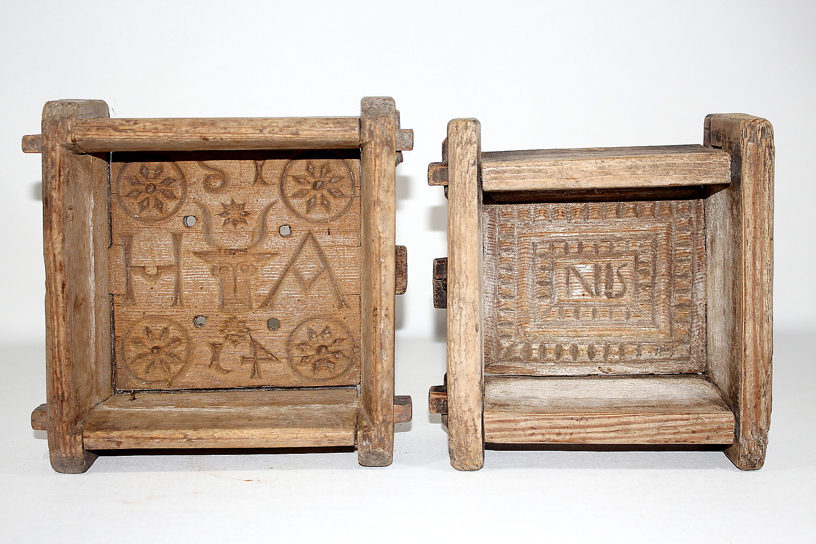 321098. OSTFORMAR, 2 st, trä, 1600-tal.