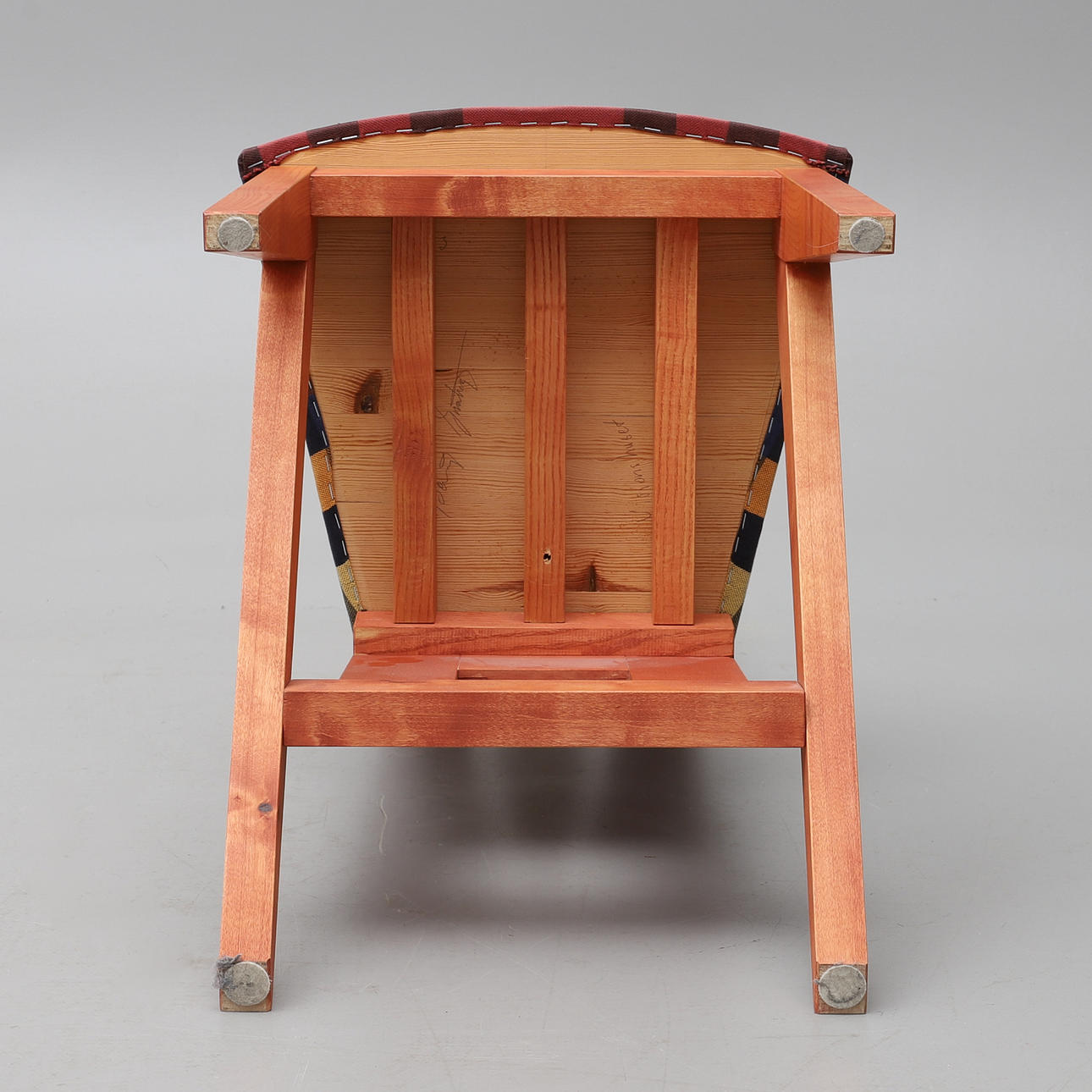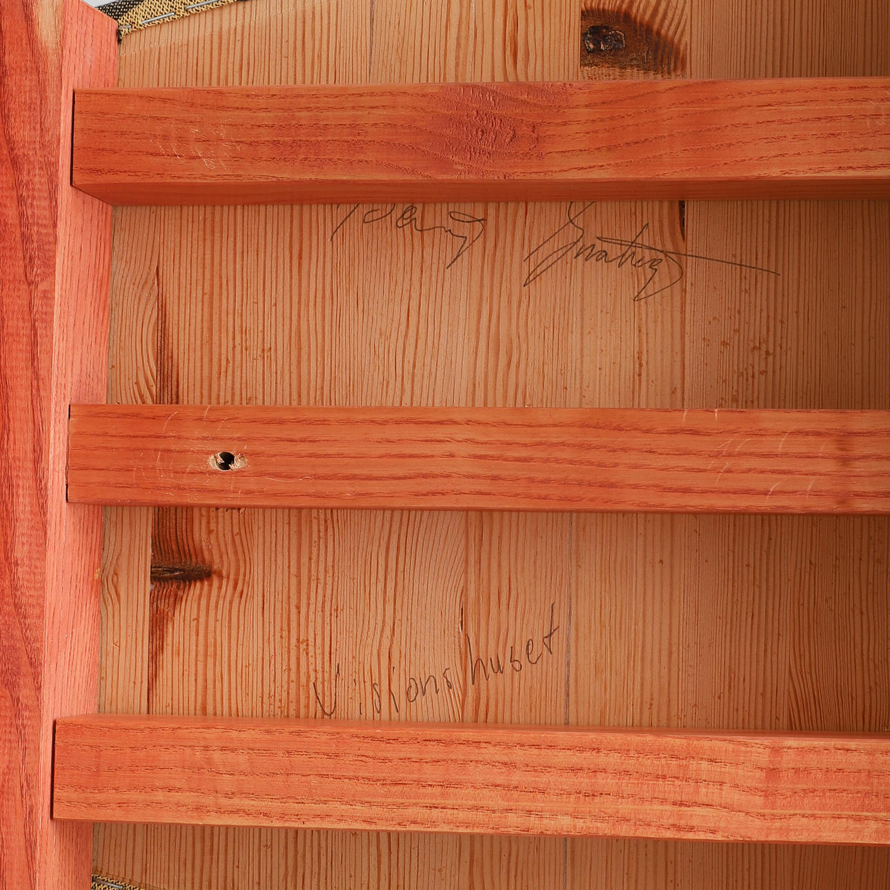 Motjärnshyttans Möbelhantverk, Visionshuset Fri Form, laserade i rött och gult, signerade, höjd 101 cm.
