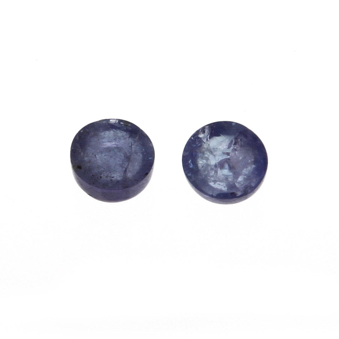 Transparenta. runda, cabochonslipade stenar, ca 6 mm i diameter. Visar ok till god pleokroism, ljust blå och violett, jämn distribution av färg.