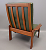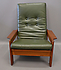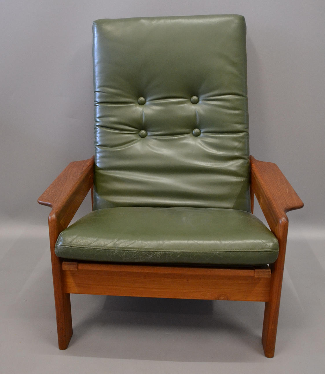 Teakram med grön läderklädsel, avtagbar stoppning, bredd: 76,5 cm, höjd: 96cm, djup: 65cm.