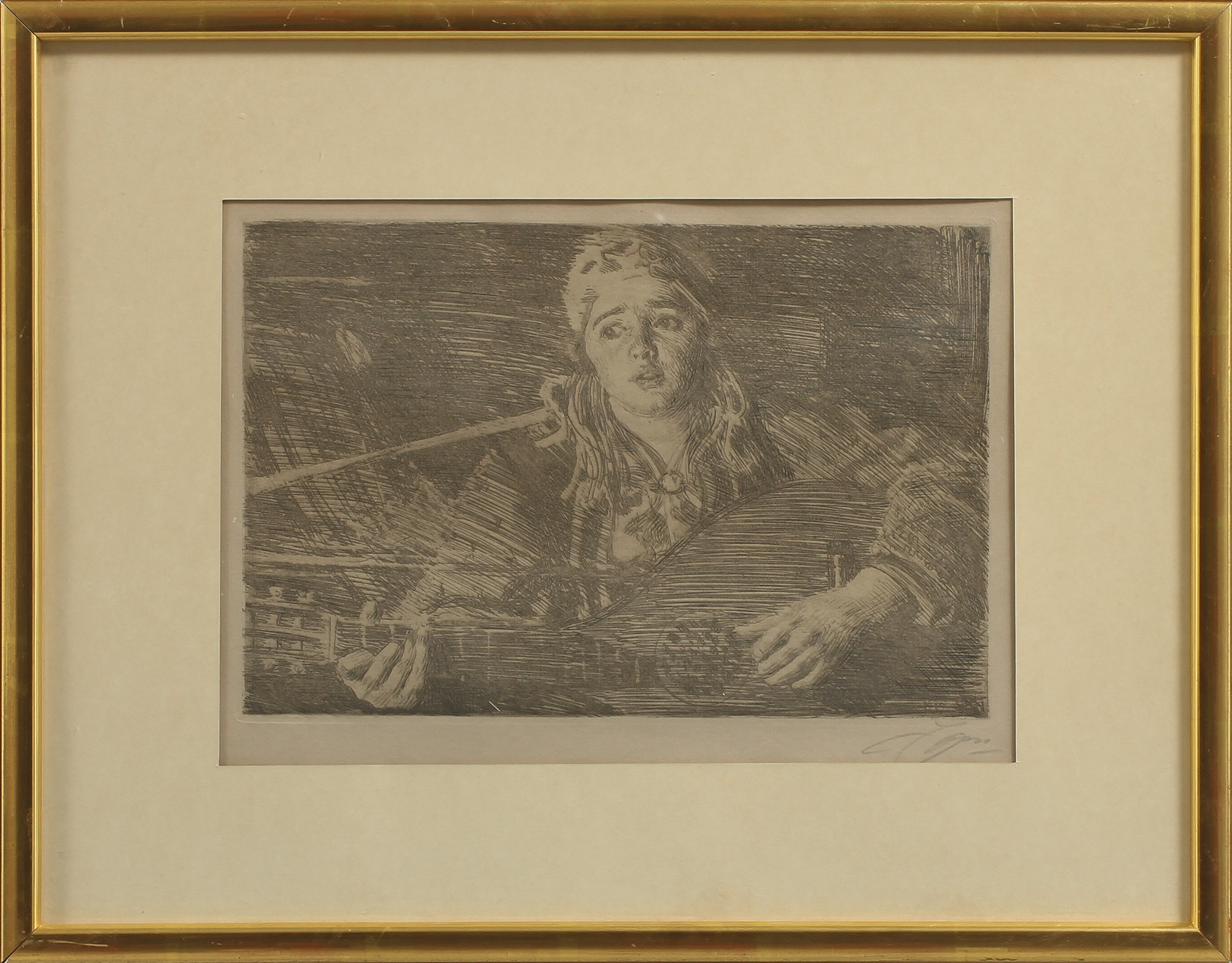 321484. ANDERS ZORN. "Ols Maria", etsning, signerad.