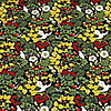 Mönstrad med växter och fåglar.