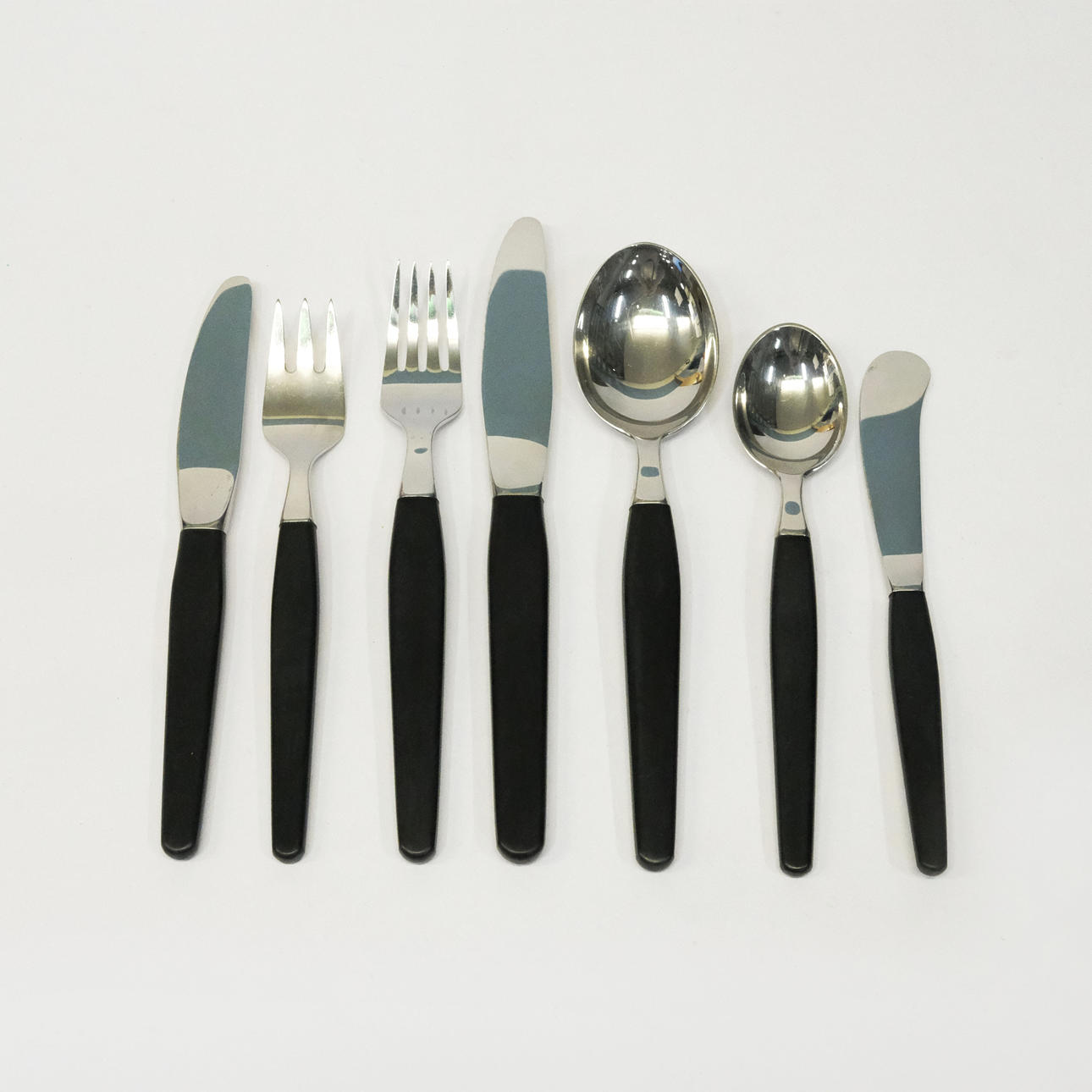 Sex smörknivar. Längd: ca 17 cm.