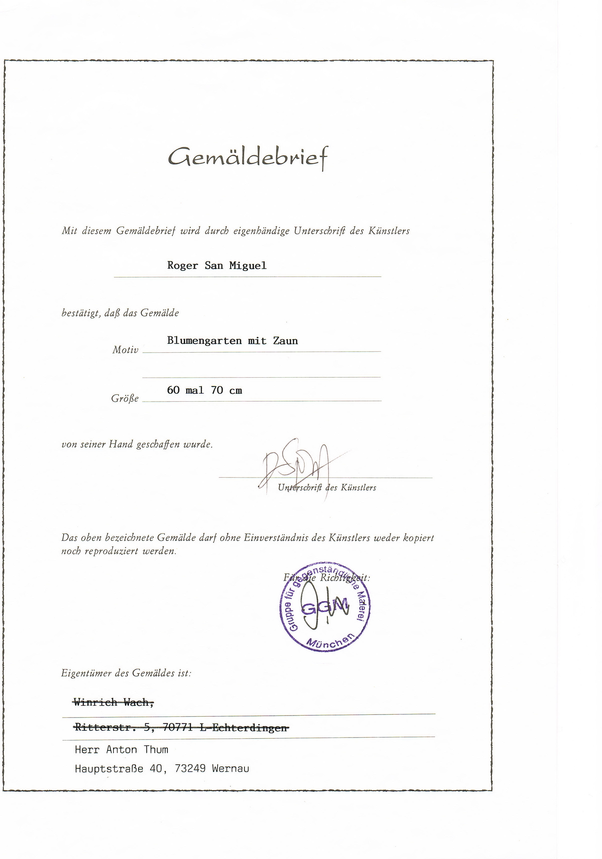 321956. ROGER SAN MIGUEL. ”Blomsterträdgård, olja på duk.