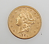 322317. GULDMYNT, 20 dollar, USA, 1881.