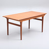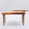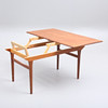 Höjd ca 58 cm, 123 x 61 cm. Går att höja upp och ställa om till matbord, men extra bordsskiva saknas.