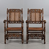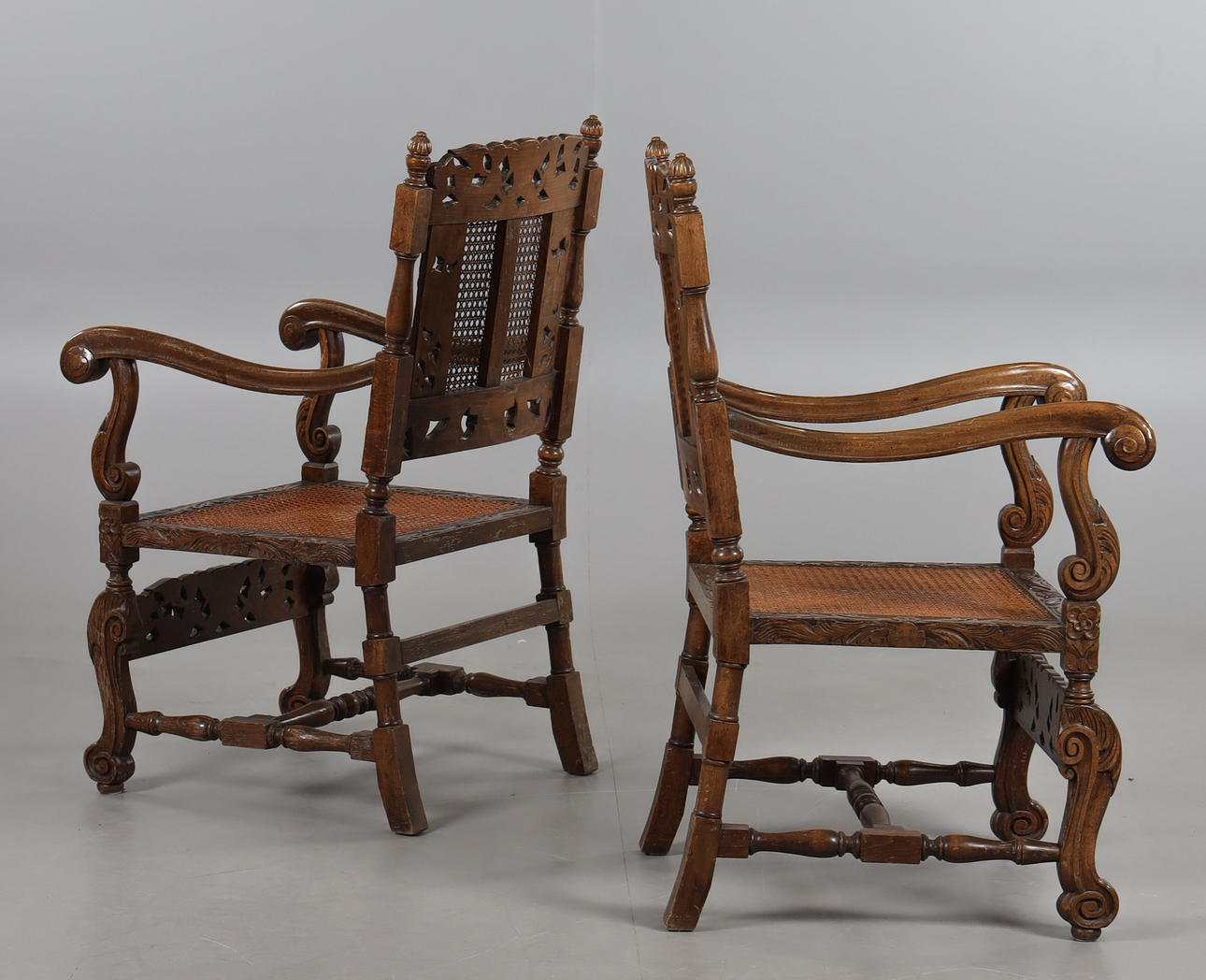 Ek, skuren dekor, sits och rygg med rotting, höjd ca 103, bredd 60, sitthöjd 41 cm.