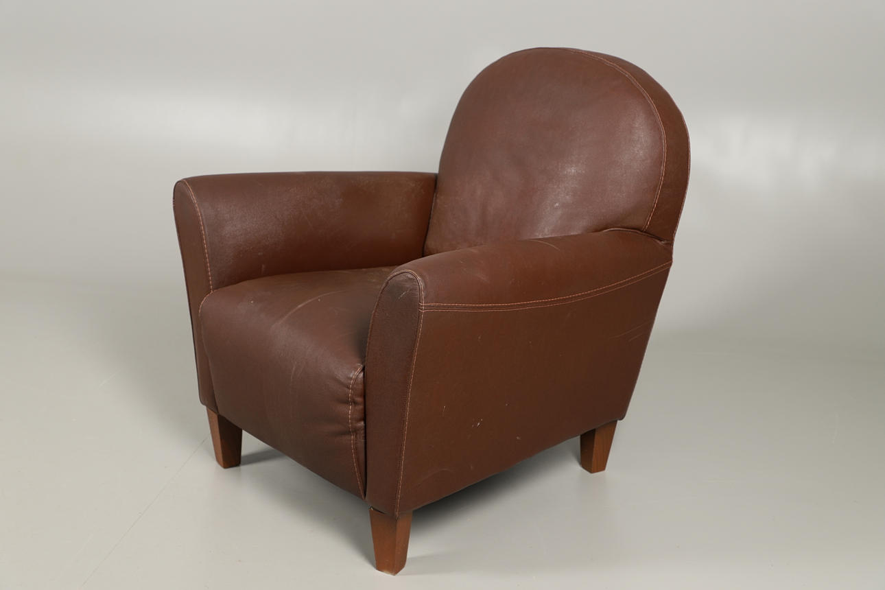 3232027. EN MODERN BRUN LÄDERFÅTÖLJ.