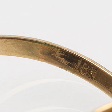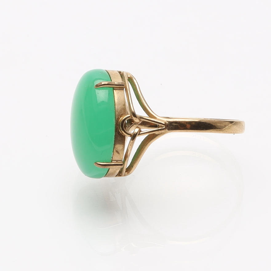 3234687. RING, 18K guld samt grön sten.