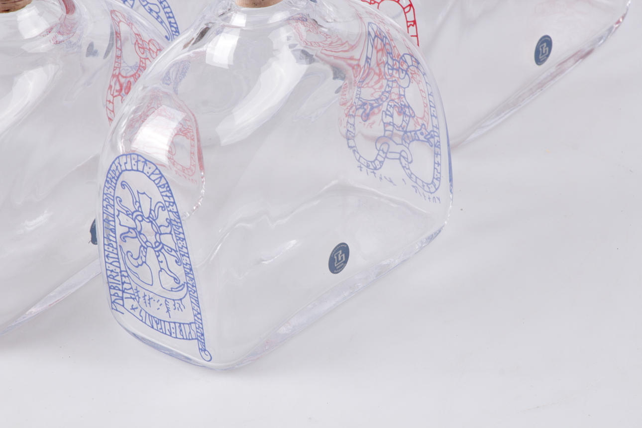 Gjorda efter 1700-tals modell. Korken försedd med dalmynt 1759. Höjd 16 cm.