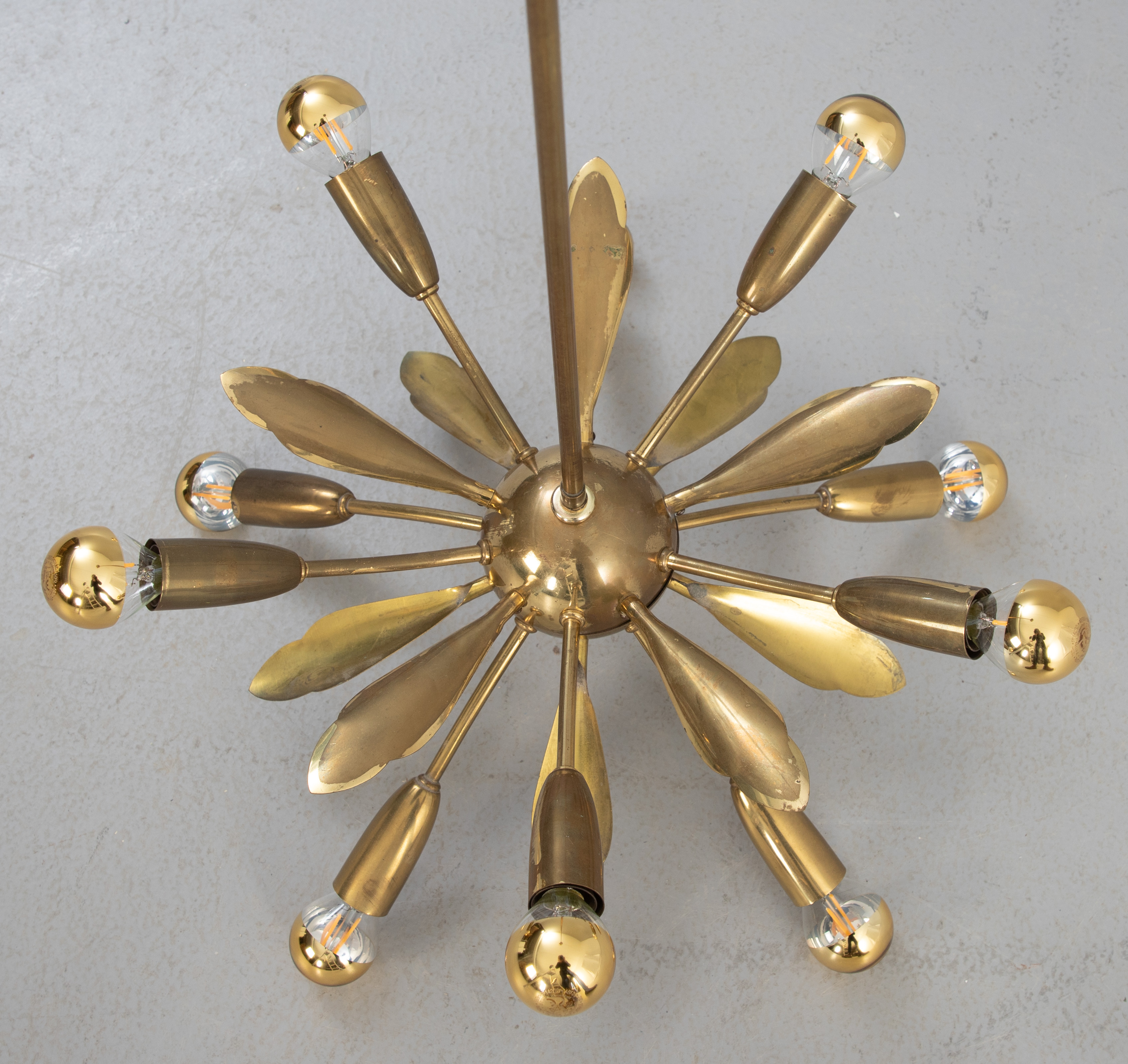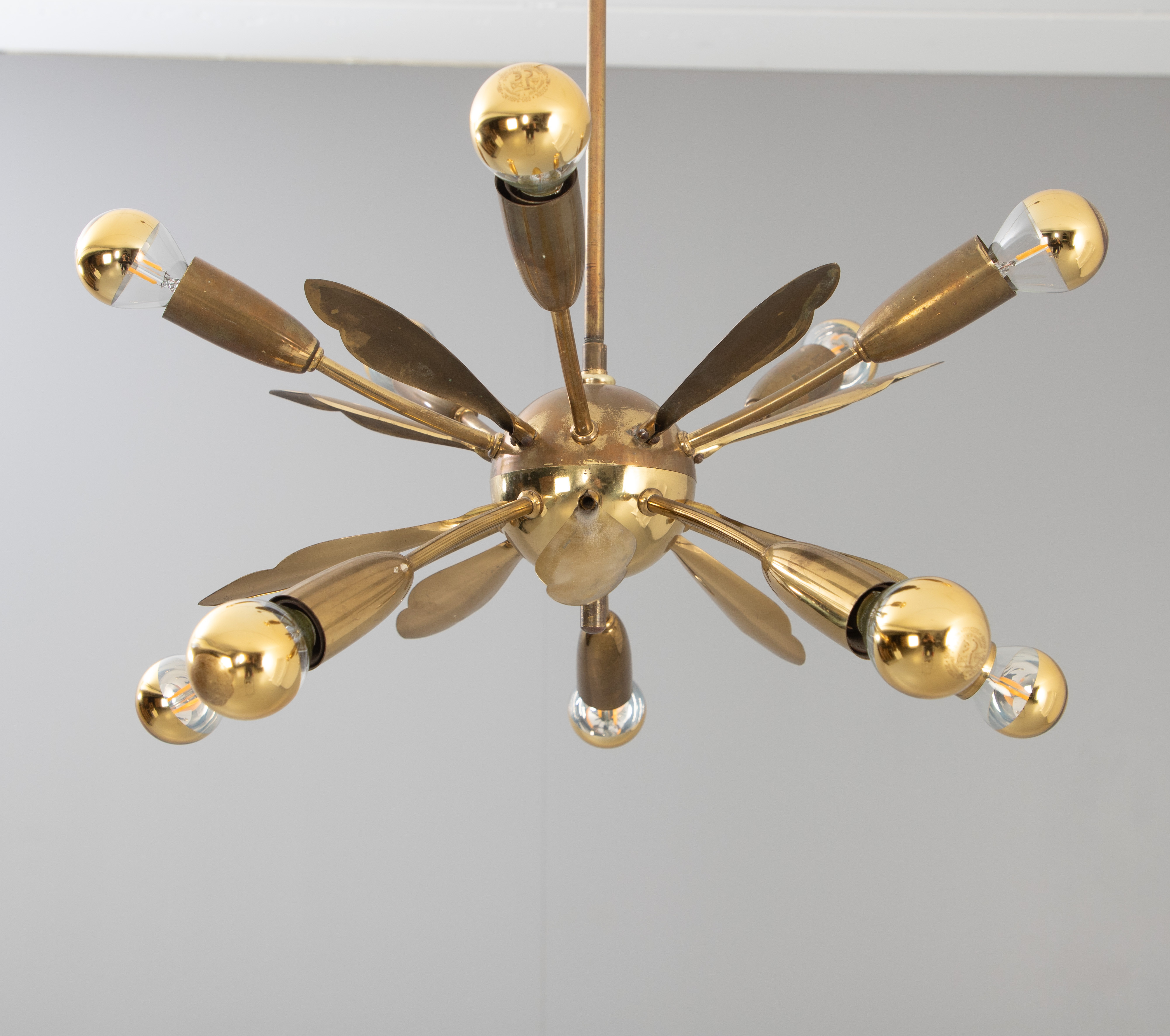3237565. Sputnik taklampa, mässing. I mitten av 1900-talet.